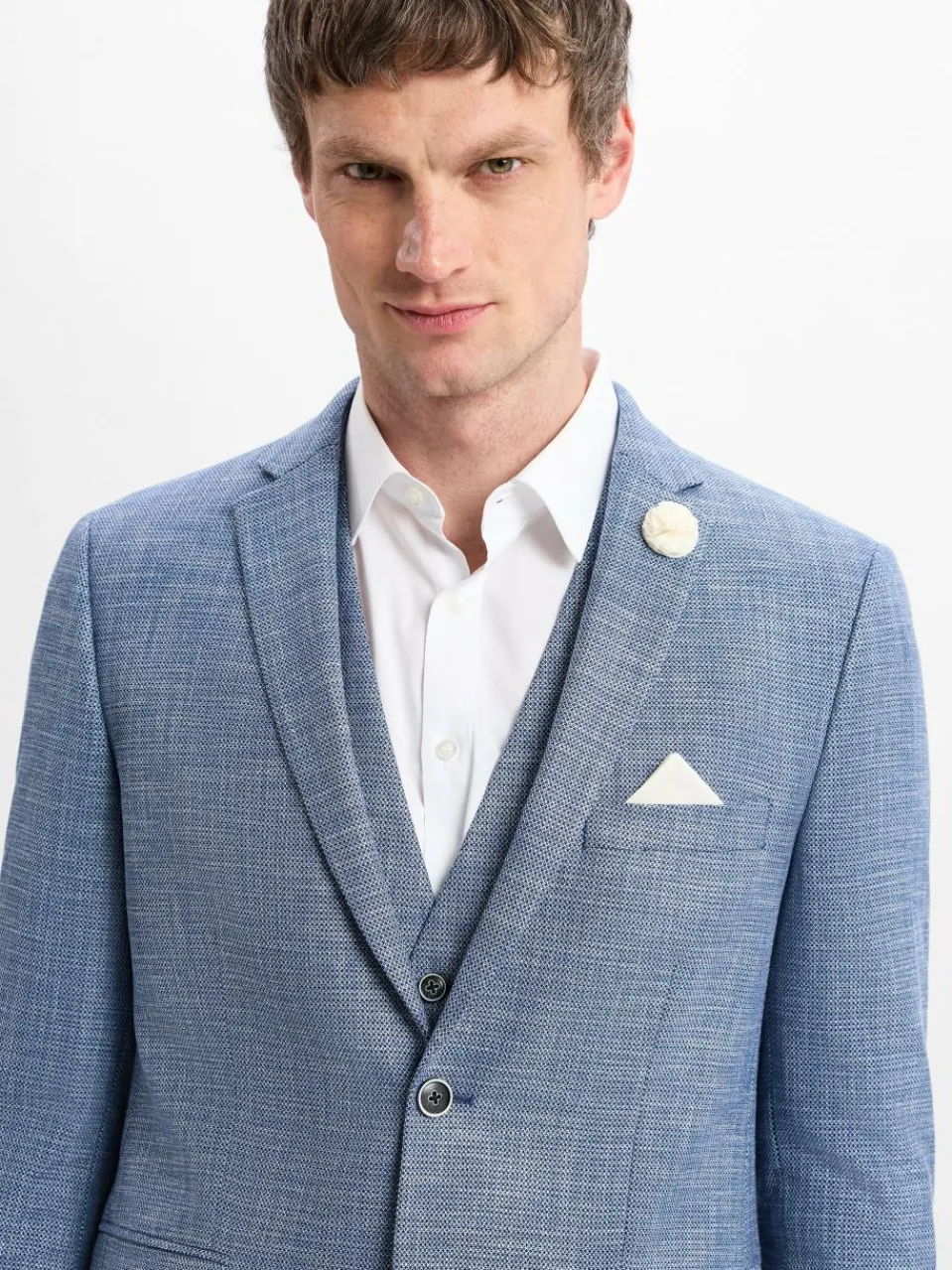 Das Sakko Steven von Finshley & Harding überzeugt durch seinen angenehmen Tragekomfort und den tollen Materialmix mit Viskoseanteil. Die Jacke ist Teil einer Kombination, kann aber auch einzeln getragen werden.