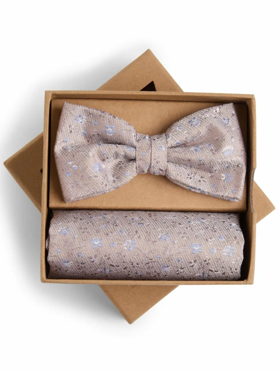 Das exquisite Ensemble aus einer eleganten Fliege und einem geschmackvollen Einstecktuch von Finshley & Harding London, gefertigt aus luxuriösem Seidenstoff und veredelt mit einem subtilen floralen Muster, verleiht jedem Anzug bei festlichen Anlässen eine edle und stilvolle Note.