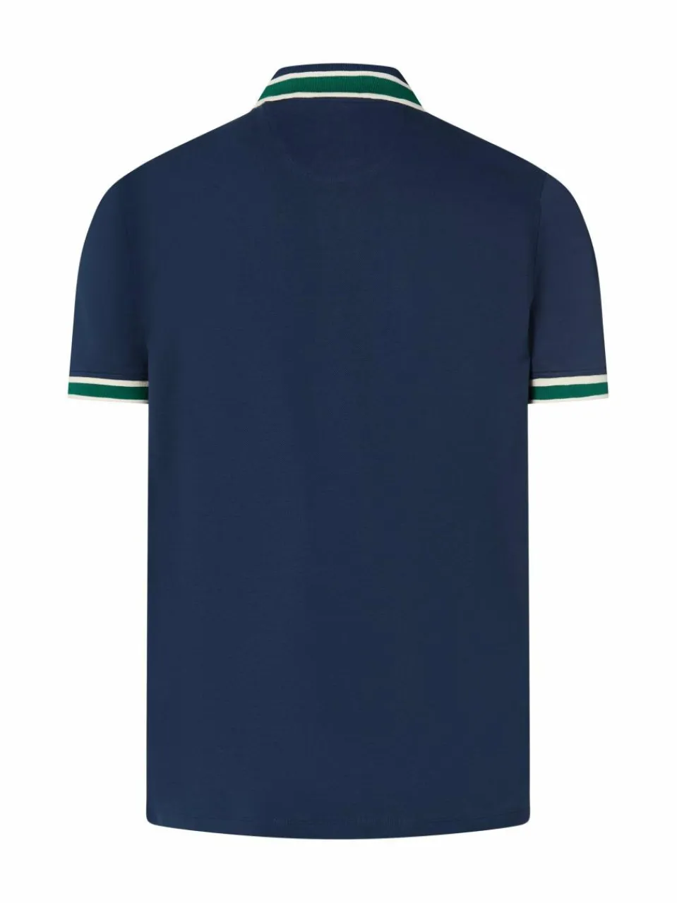 Das Mini-Logo auf Brusthöhe akzentuiert den sportiven Look des Poloshirts von Finshley & Harding London zusammen mit den gestreiften Details am Kragen und an den Ärmelbündchen.