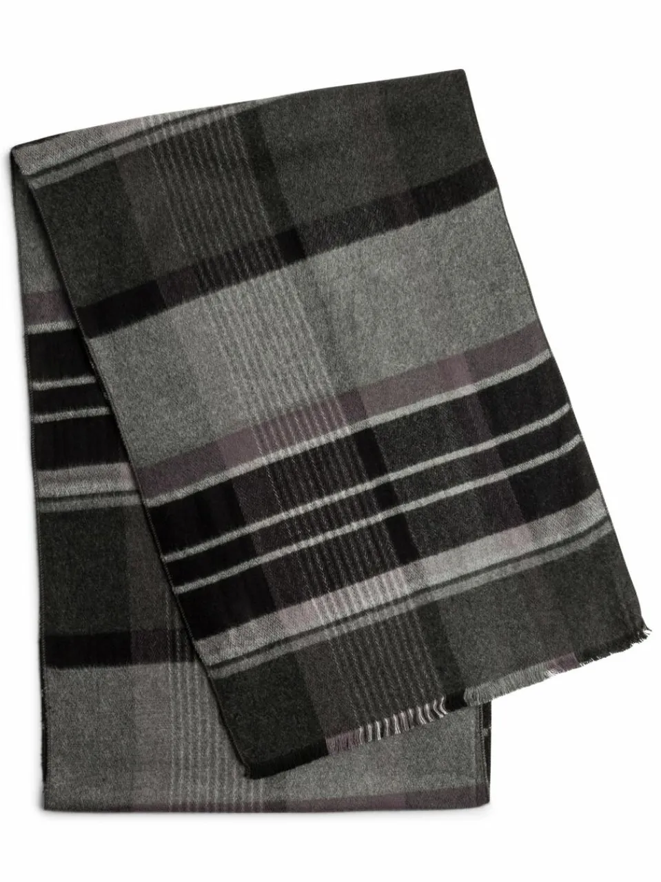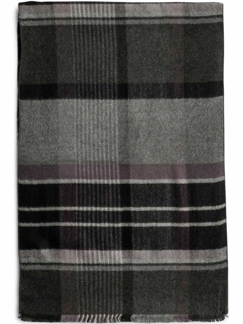 Passt perfekt in das daily Kalt-Wetter-Styling: der weiche Viskoseschal von Finshley & Harding mit klassischem Muster und feinen Fransen.