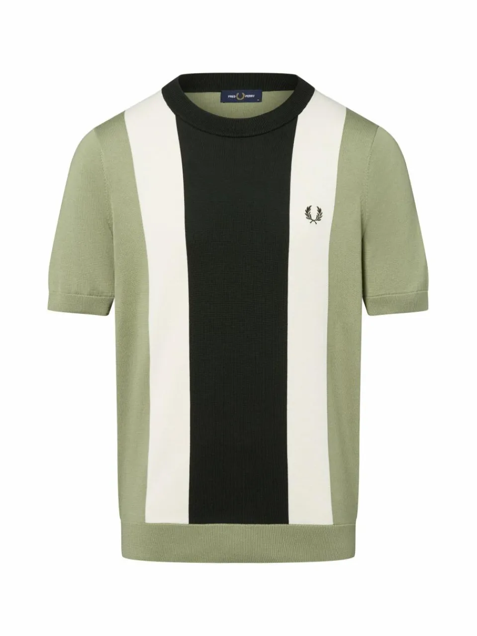 Als lässiges Basic mit besonders smartem Charme und markantem Blokstreifen-Design begeistert das Fred Perry Strickshirt aus reiner Baumwolle.