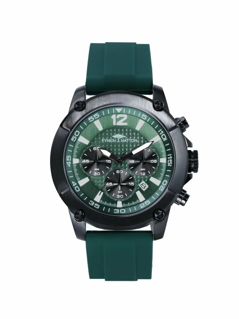 Edelstahlarmbanduhr mit Chronographenfunktion und Silikonband von Fynch-Hatton.