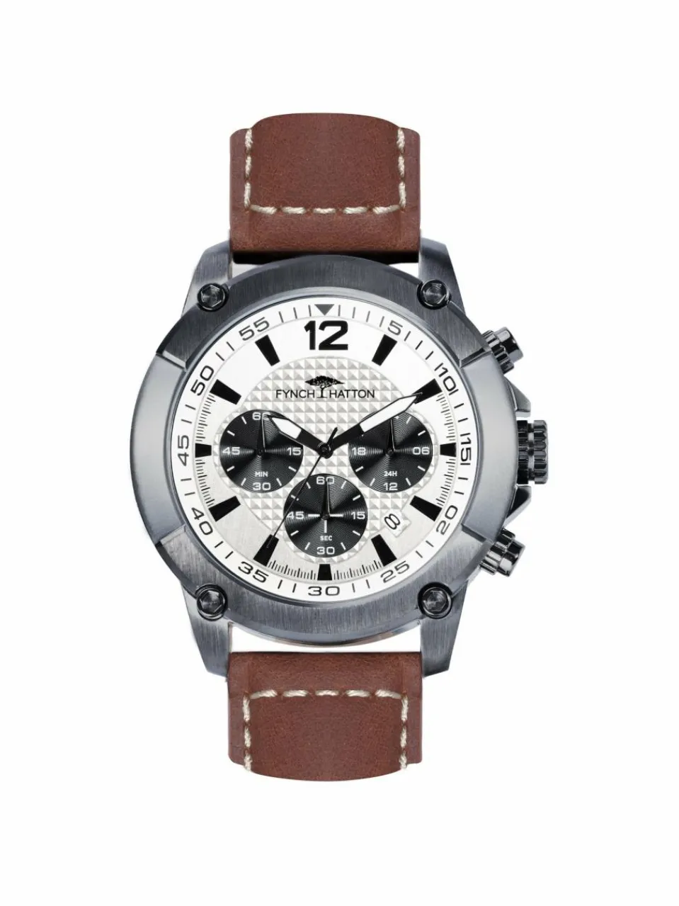 Edelstahlarmbanduhr mit Chronographenfunktion und Lederband von Fynch-Hatton.