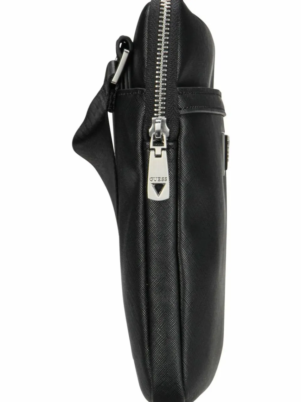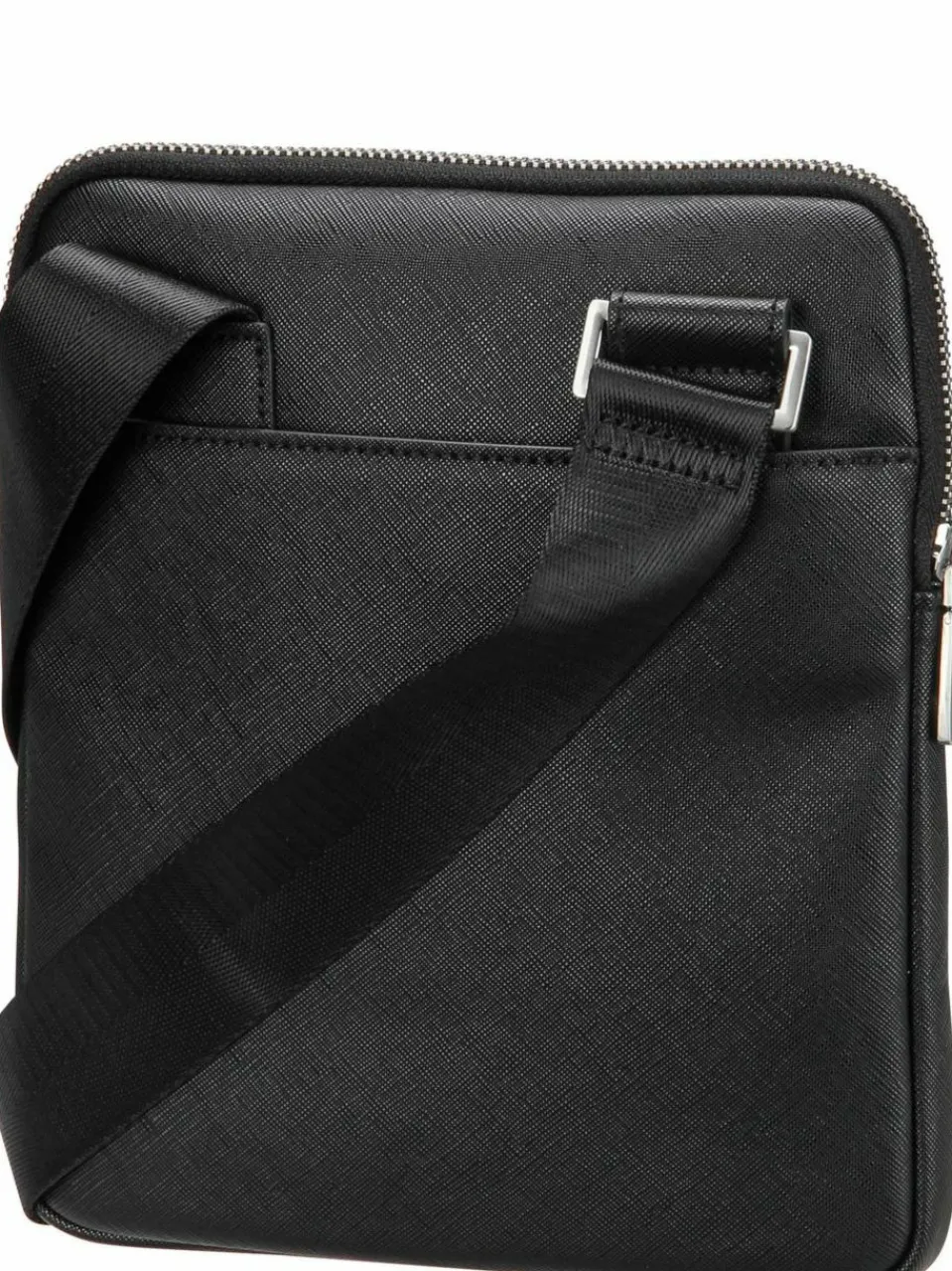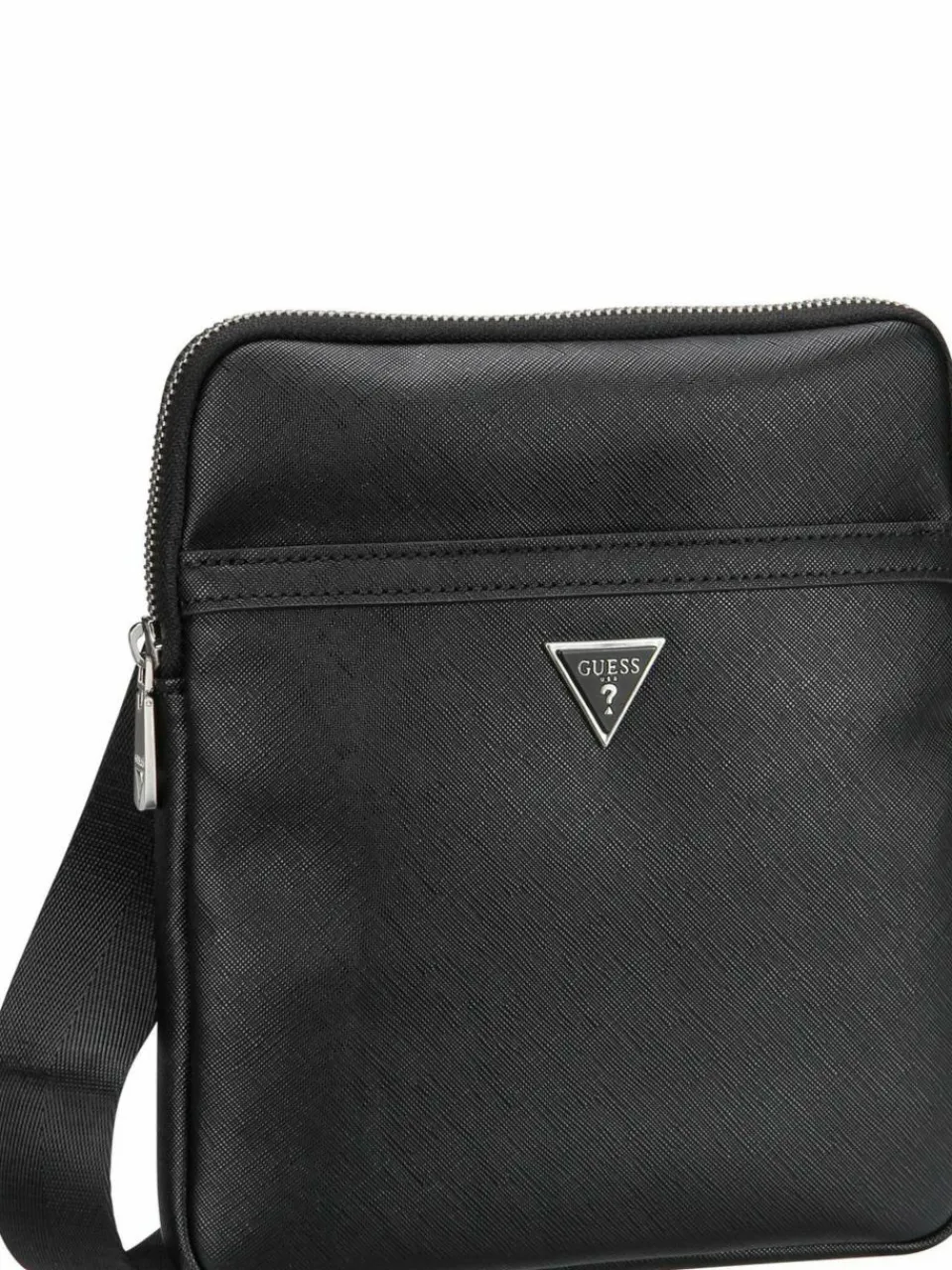 Kompakte Crossbody Bag von Guess aus pflegeleichtem Kunstleder mit Saffiano-Struktur. Geradliniges Design und ausreichend Platz, ideal für den Alltag stilbewusster Herren.
