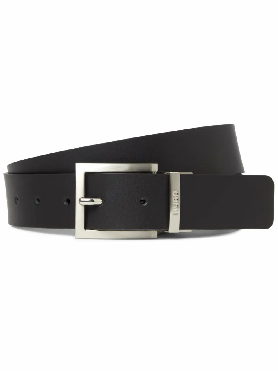 Das glatte Leder und die kantige Dornschließe zaubern aus dem HUGO Gürtel Marc einen stilvollen Begleiter, der Office- und Freizeit-Looks vollendet.