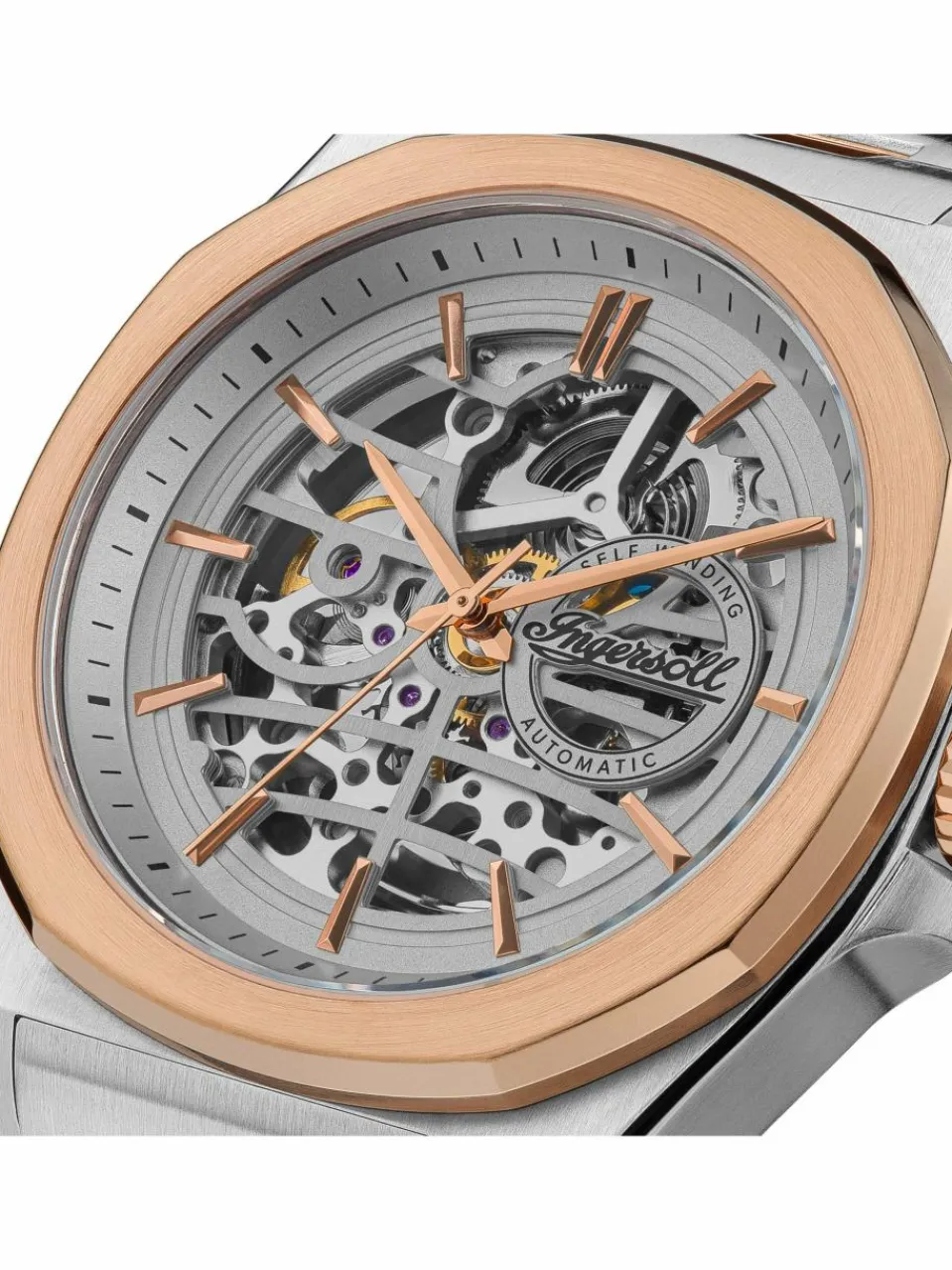 Ein Statement-Zeitmesser, der eine Kombination aus robuster und durchdachter Handwerkskunst ist. Die Einfachheit dieses Gehäuses und die klaren Linien der Lünette ergänzen die Feinheiten und die Schönheit des skelettierten Uhrwerks und des Ausstellungsbodens. Jede Ingersoll Uhr wird in einer hochwertigen Ingersoll Kunstlederbox verpackt.