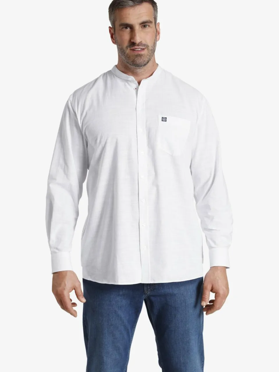- Kurzer Stehkragen mit Knopf