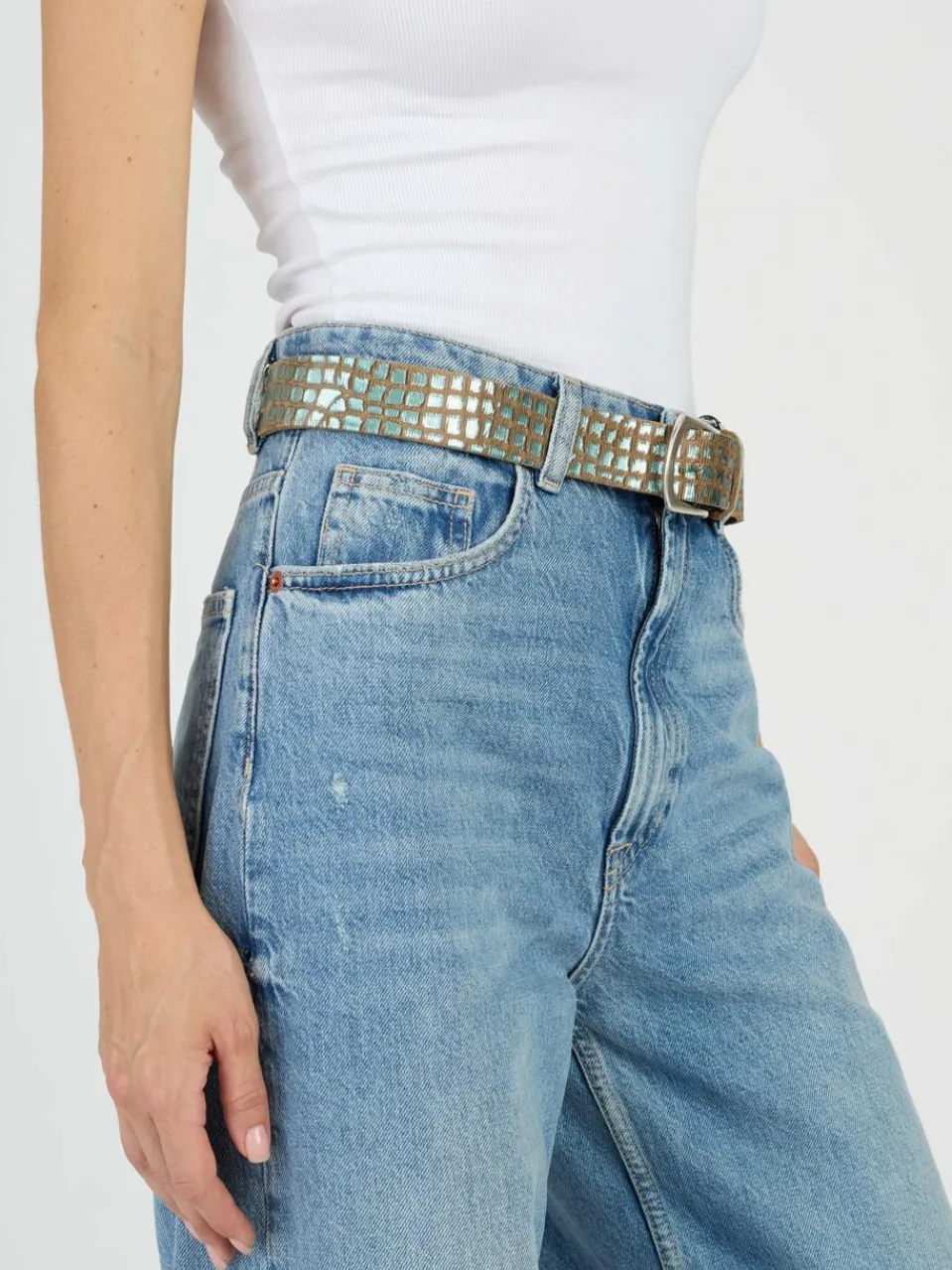 Dieser handgefertigte Gürtel aus robustem Rindleder mit metallic Look überzeugt durch seine außergewöhnliche Optik und hochwertige Verarbeitung. Das geprägte Muster unterstreicht den individuellen Charakter und macht den Gürtel zu einem echten Blickfang. Ideal für jeden, der Wert auf ein besonderes Design legt.