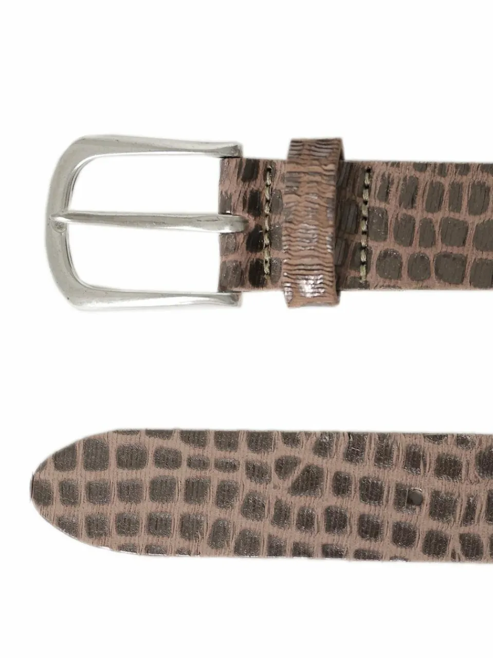 Dieser handgefertigte Gürtel aus robustem Rindleder mit metallic Look überzeugt durch seine außergewöhnliche Optik und hochwertige Verarbeitung. Das geprägte Muster unterstreicht den individuellen Charakter und macht den Gürtel zu einem echten Blickfang. Ideal für jeden, der Wert auf ein besonderes Design legt.