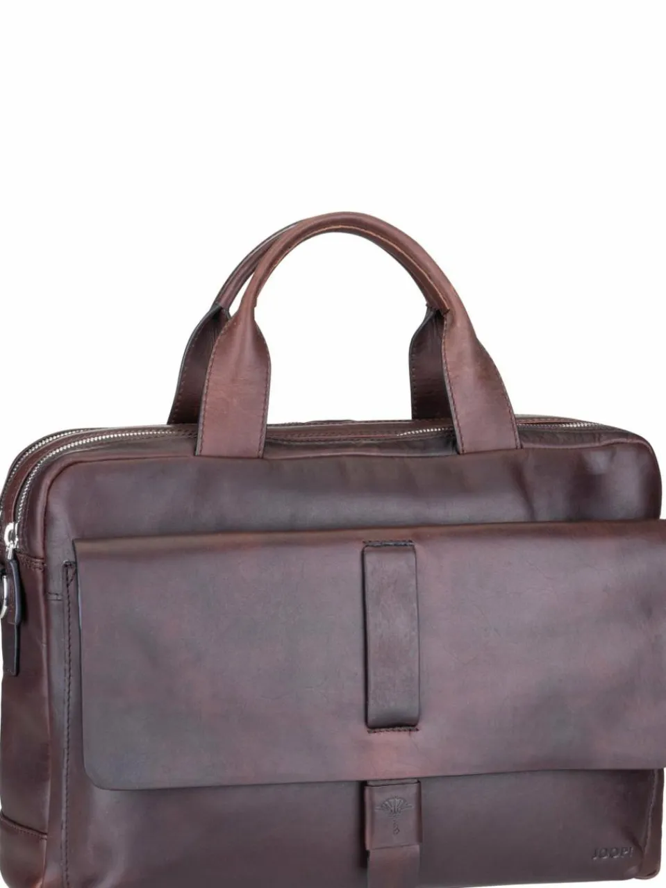 Erfolgreich und mit gutem Stil im Beruf stehen: Aktentasche von Joop mit 2 Hauptfächern und Fach für Laptops bis 33x20x3 cm. Aus edlem Fettleder.