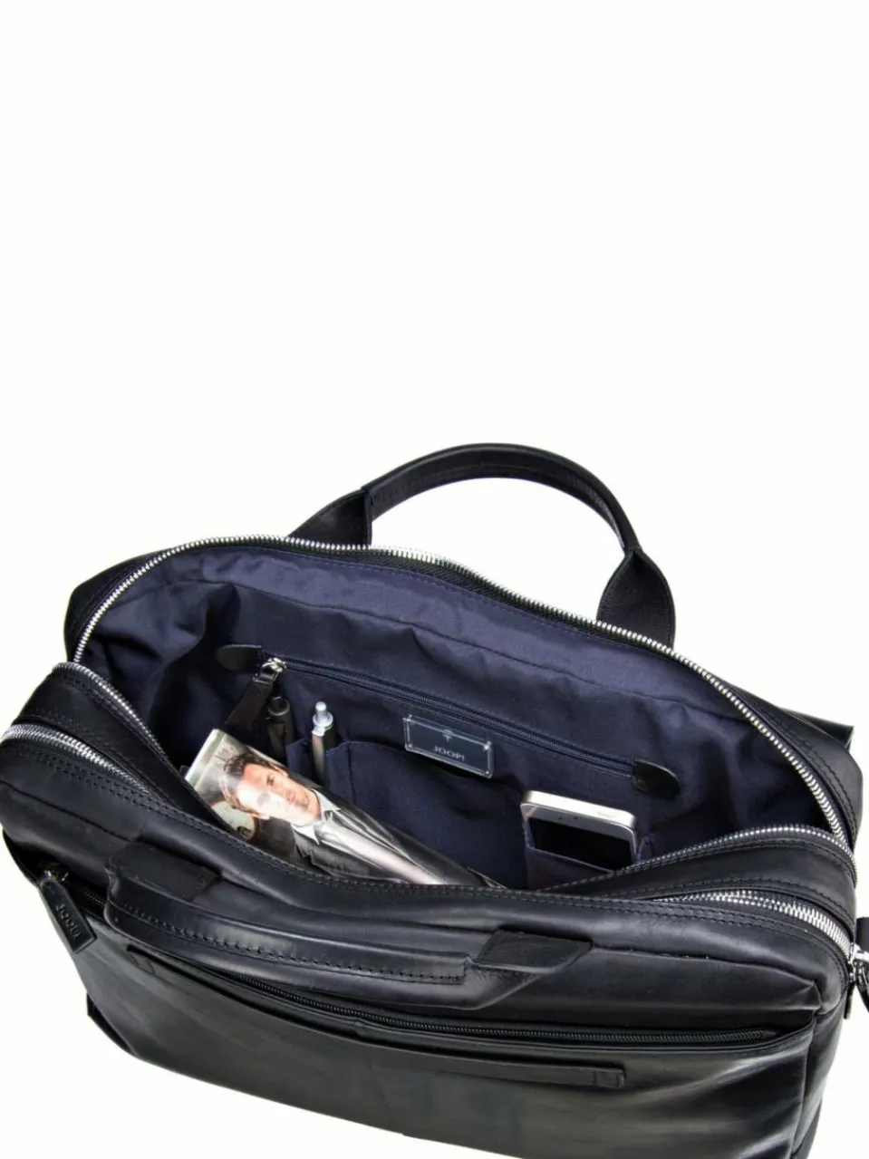 Erfolgreich und mit gutem Stil im Beruf stehen: Aktentasche von Joop mit 2 Hauptfächern und Fach für Laptops bis 33x20x3 cm. Aus edlem Fettleder.