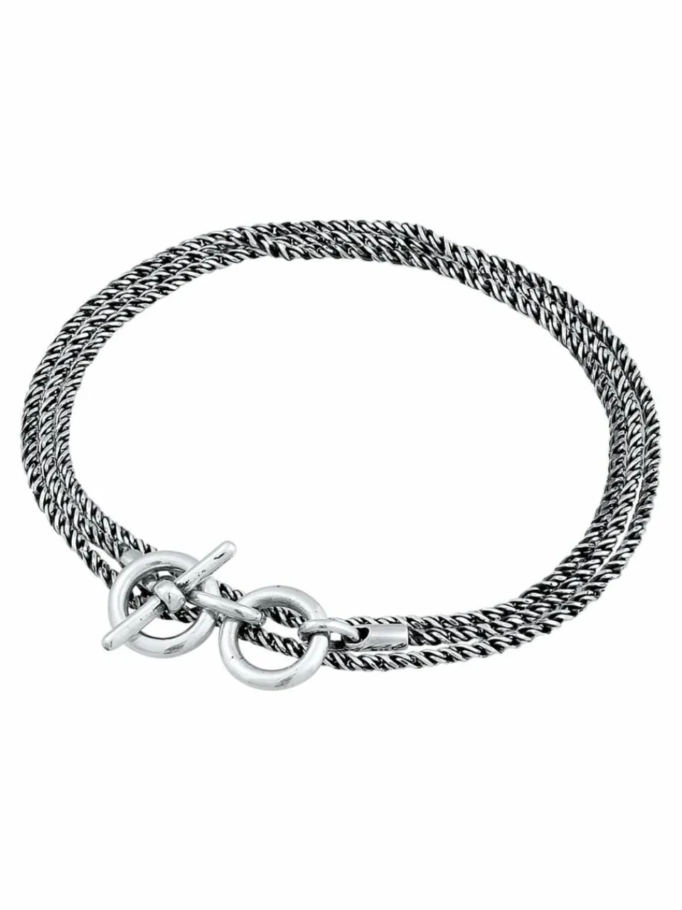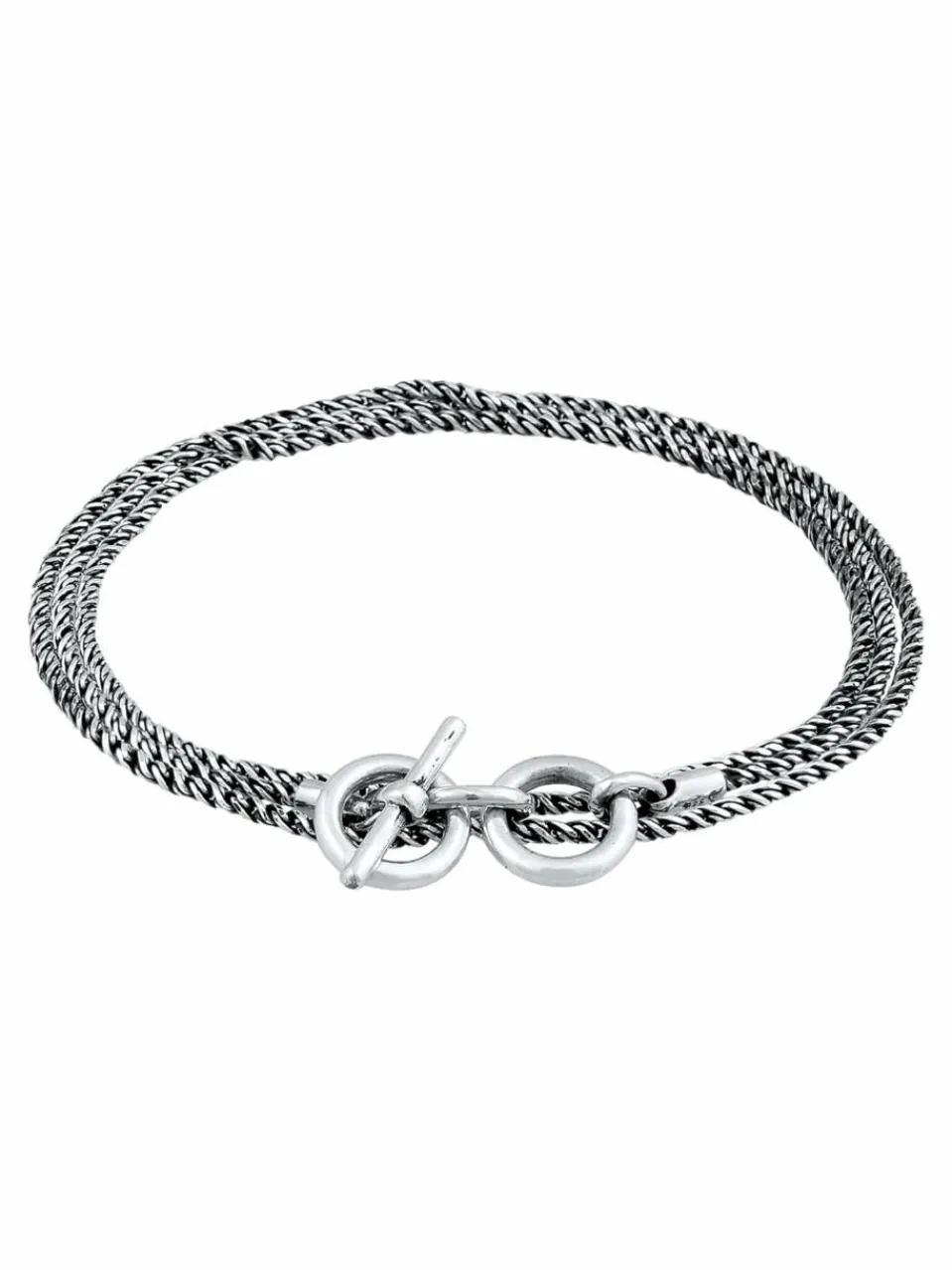 Dieses lässige Armband für den Mann, vereint rundes Design mit oxidierter Oberfläche. Zwei oder dreimal um das Handgelenk geschlungen, bildet die gedrehte 2 mm starke Kette einen stilvollen Kontrast. Ein Highlight des Schmuckstücks, ist die schlichte runde T-Bone Schließe. Das robuste Finish begeistert nicht nur durch seine bemerkenswerte Optik, sondern auch durch seinen Vintage Design, das zum Jeans und Business Outfit passt.