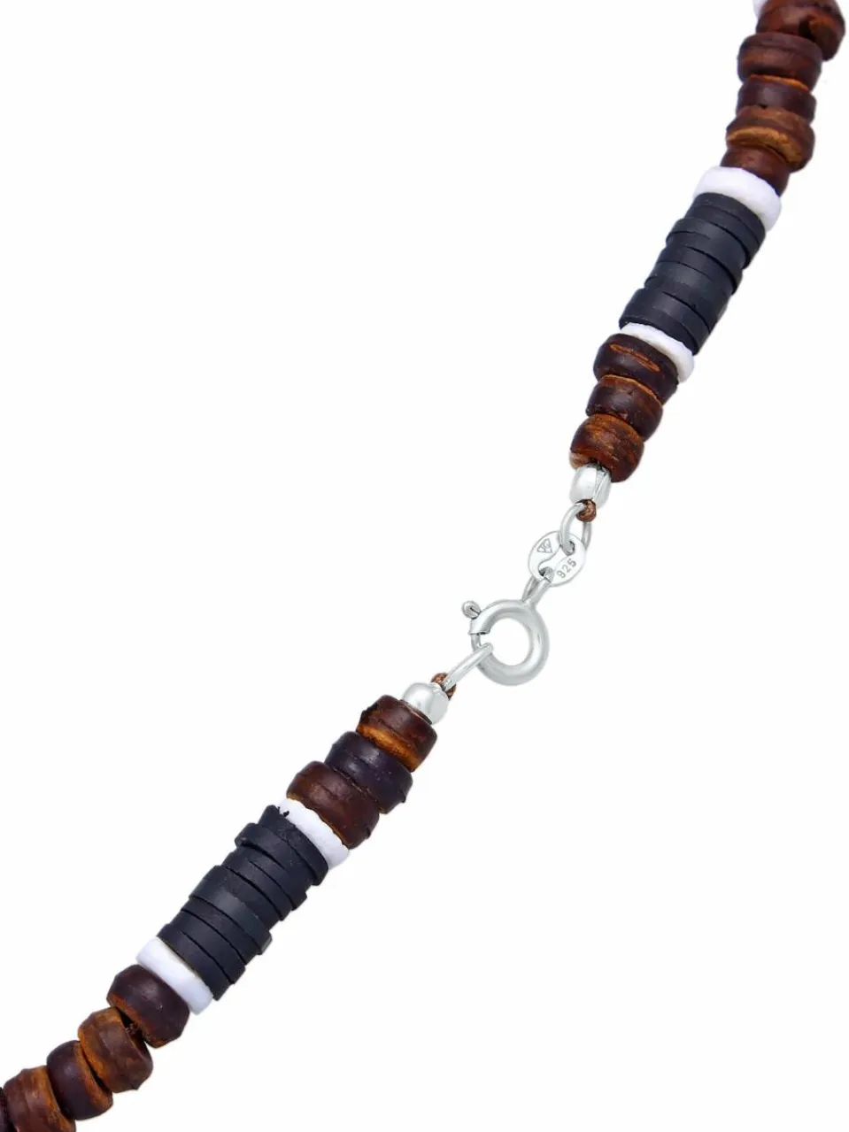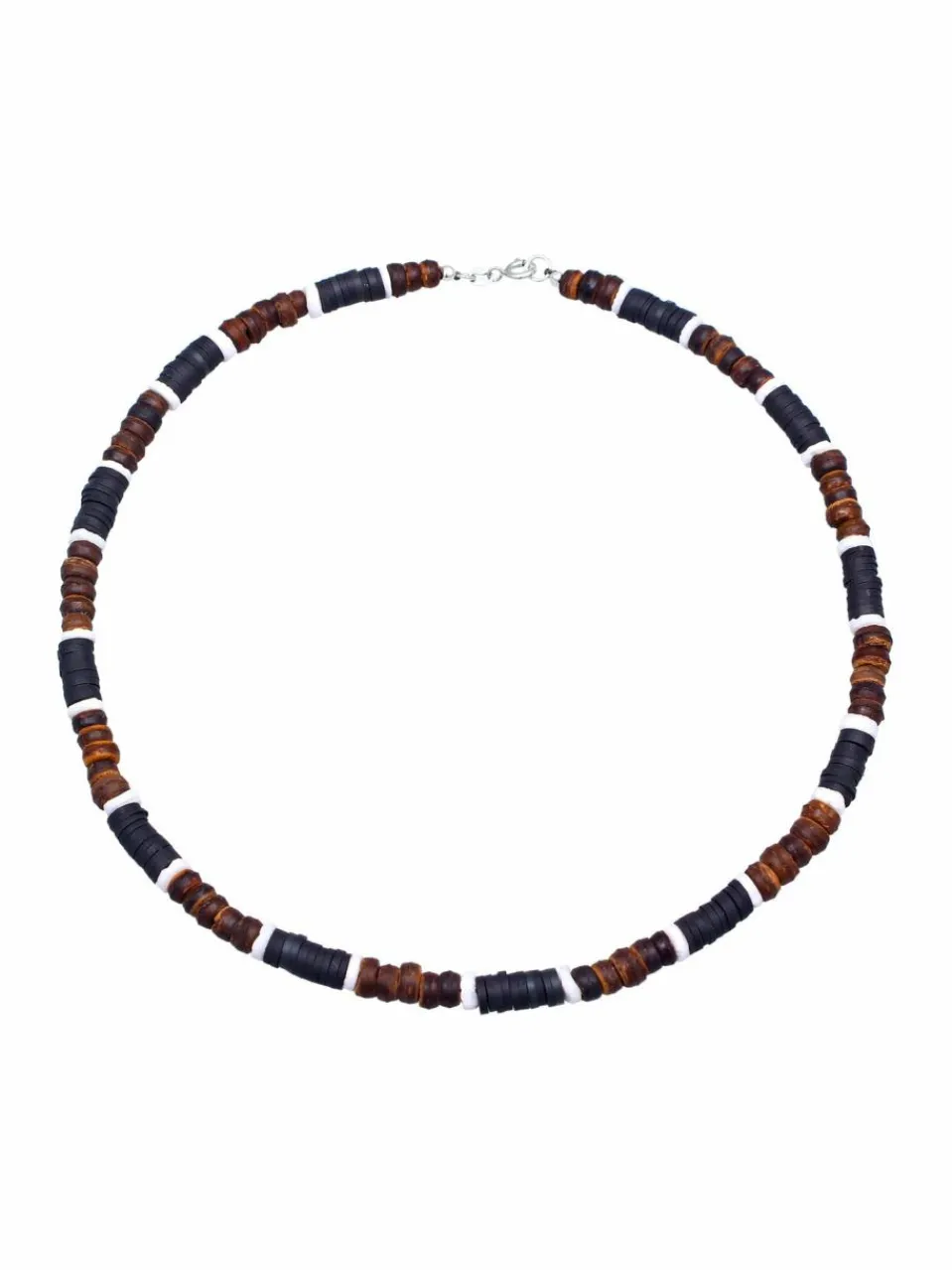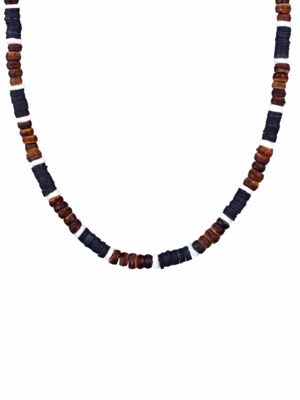 Hinterlasse einen bleibenden Eindruck mit dieser atemberaubenden, handgefertigten Herren Heishi Halskette. In einem unvergesslichen von Surfern inspirierten Stil, werden Kokosnuss Holz Perlen und verschieden Muschelperlen kombiniert in einem auffälligen Schmuckstück. Jede Perle hat ihren eigenen Charme. Ein Schmuckstück das bei keinem Sommeroutfit fehlen sollte.Da es sich um ein Naturprodukt handelt, ist jede Perle einzigartig.