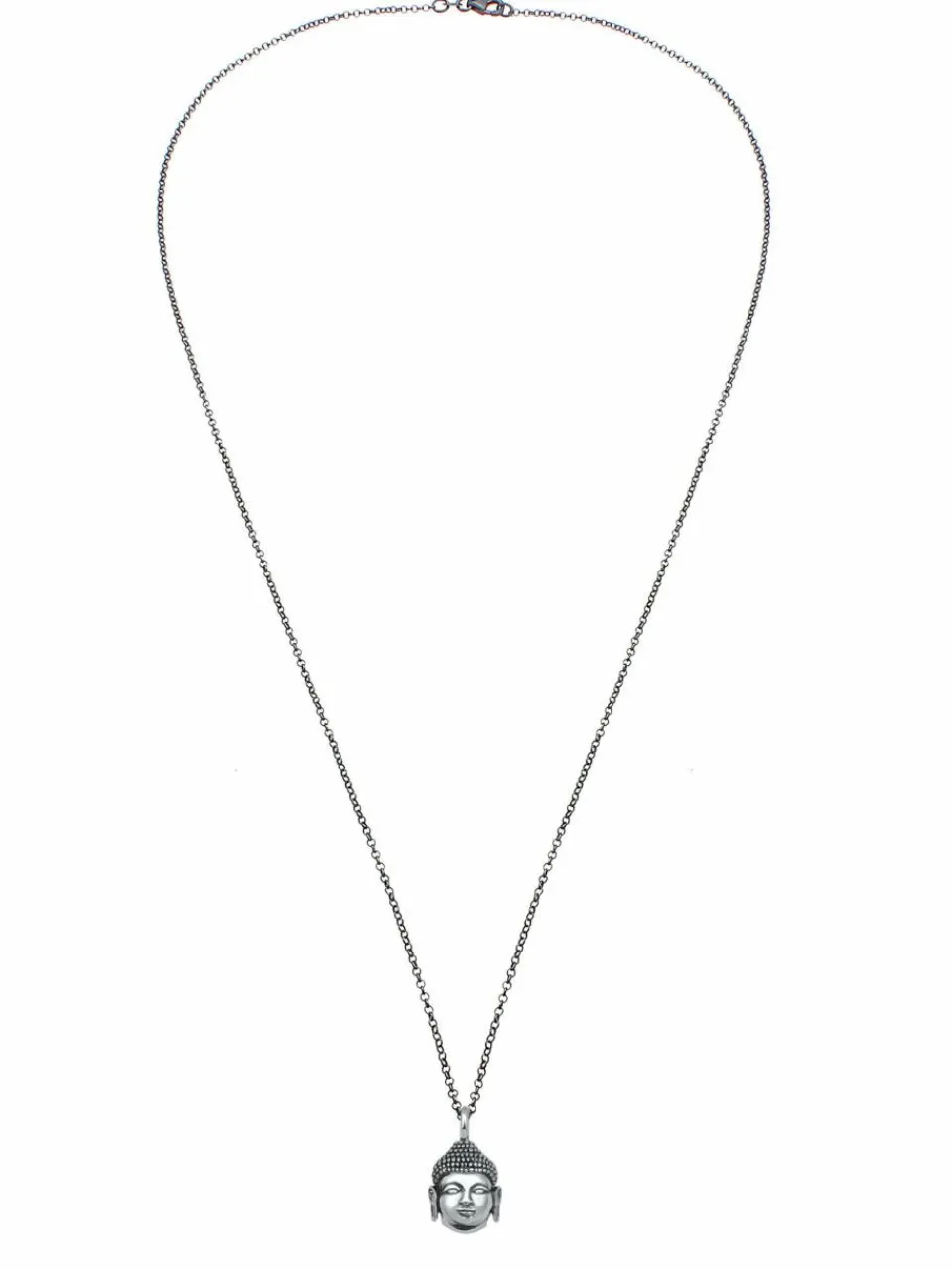 Moderne Herren Halskette mit buddhistischem Anhänger. Das kraftvolle Schmuckstück mit einem Buddha Kopf Anhänger wird im Nu zum neuen Glücksaccessoire. Angesagter Statement Schmuck für alle modebewusst lässigen Männer.