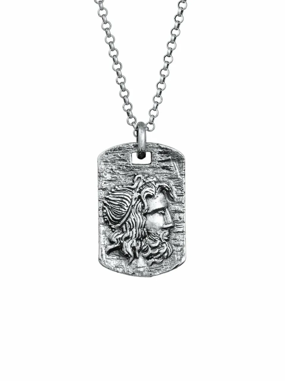 Diese trendige 55 cm lange Männer-Halskette aus 925 Sterling Silber, wird dein neuer täglicher Begleiter. Der strukturierte Plaketten Anhänger mit einem Gesicht aus Silber sorgt für einen lässigen und coolen Look im antiken Design. Egal, ob du in deiner Freizeit bist oder am Abend ausgehst, diese Halskette passt einfach perfekt zu jedem Style.
