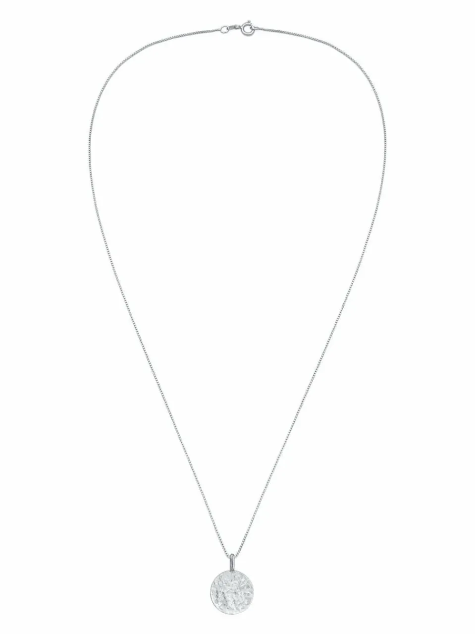 Diese schlichte Herren Halskette, setzt mit ihrem runden, gehämmerten Plättchen Anhänger Akzente. Der im Vintage Style glänzende Anhänger wird durch das klassisch schlichten Figaro-Design der Kette betont. Ein großartiges Accessoire, das jedem Männer Outfit eine dezente Eleganz verleiht.