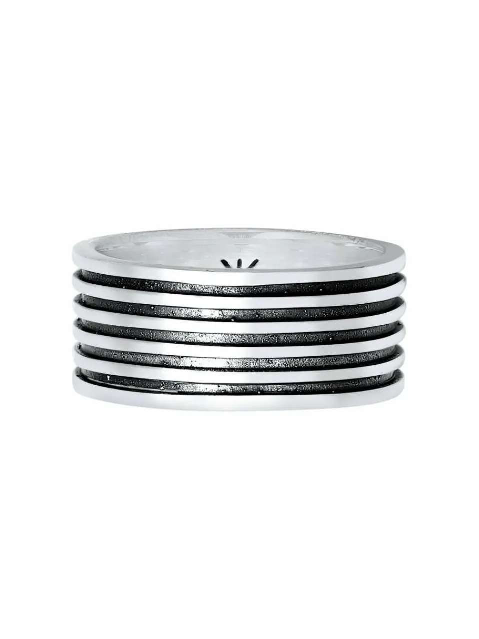 Dieser markante Ring für den Mann, ist durch seine geradlinige Form ein Blickfang. Die kantig, breite Ringschiene ist mit Rillen und teils oxidierter Oberfläche veredelt. Das klare Design unterstreicht jeden Look und verleiht in einem besonderen Akzent. Ein lässiges Accessoire als Trendsetter für jeden Anlass..Dieses exklusive Schmuckstück wird in einer eleganten Geschenk-Box geliefert.