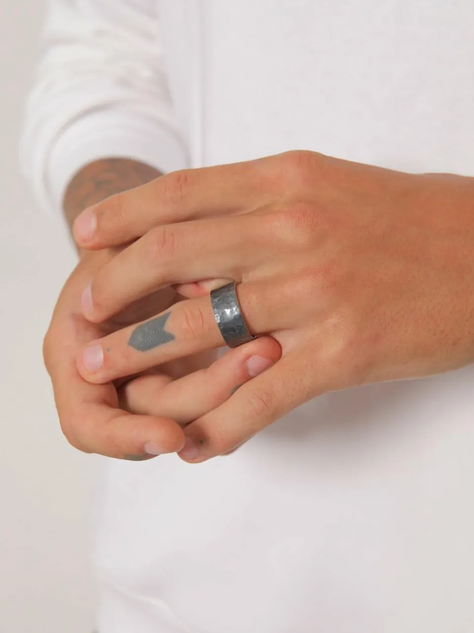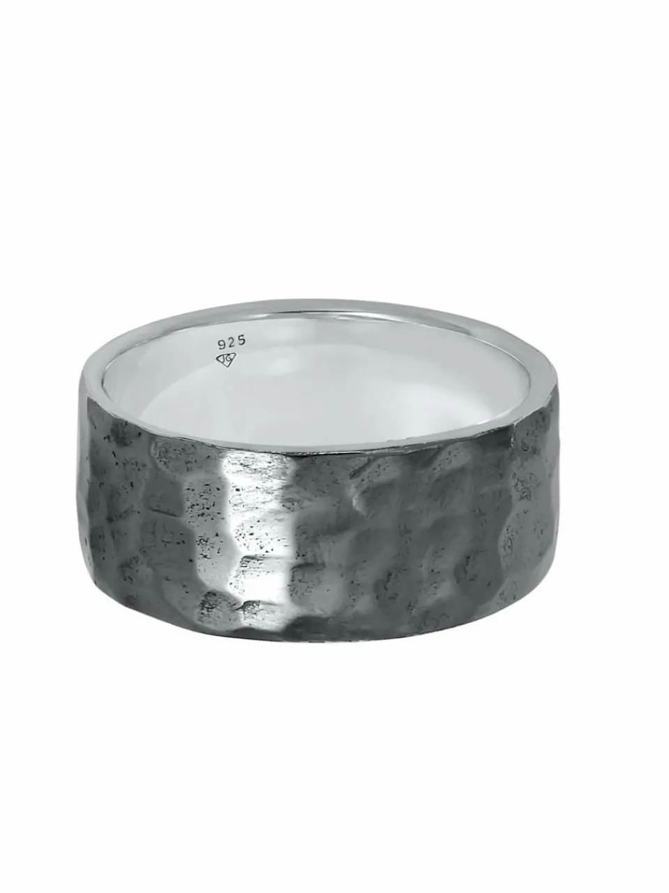 Im markanten Hammerschlag Design präsentiert sich dieser Ring für Männer. Das Schmuckstück mit den sanft abgerundeten Kanten bringt Lässigkeit mit angenehmen Tragekomfort an die Hand. Dieses handgefertigte Accessoire im Used Look überzeugt durch seinen Style.Dieses exklusive Schmuckstück wird in einer eleganten Geschenk-Box geliefert.