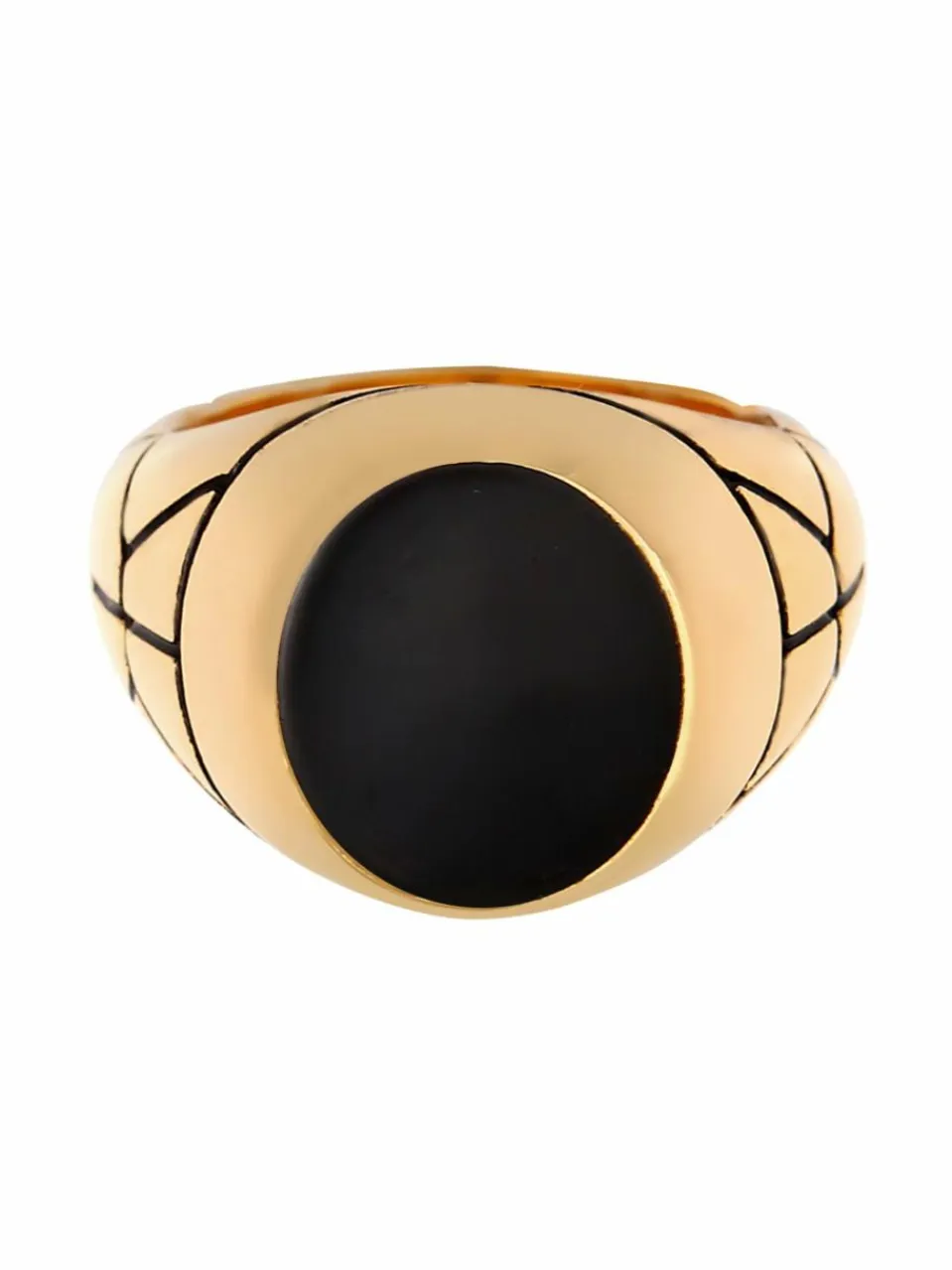 Mit diesem Siegelring für Männer mit detailreichem unvergleichlichem Design wird dein Look vollständigen. Die Ovale Oberfläche des robusten Rings ist mit Emaille in schwarz veredelt. Der Herrenring lässt sich auch wunderbar mit anderen Accessoires kombinieren. Ein cooles Schmuckstück für den modebewussten Mann.Dieses exklusive Schmuckstück wird in einem eleganten Geschenk-Etui geliefert.