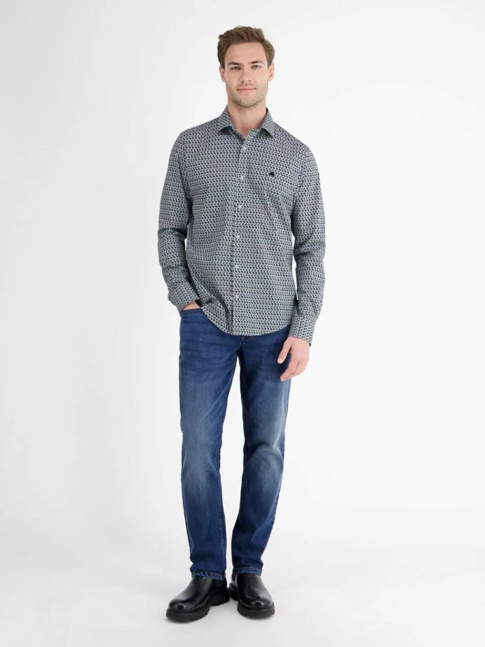 Das LERROS Herrenhemd mit sportivem Haifischkragen besticht durch sein geometrisch designtes Minimalmuster und die normale Schnittführung . Die Zwei-Knopf-Manschetten und die elastische Baumwollqualität verleihen dem Langarmhemd nicht nur eine lässige Optik, sondern auch den bequemen Tragekomfort.