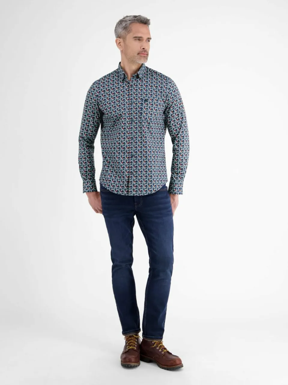 Dieses LERROS Hemd besticht durch sein lebendiges Blattmuster und die normale Schnittform. Der verdeckt-geknöpfte Button-down-Kragen, die aufgesetzte Brusttasche und die Zwei-Knopf-Manschetten verleihen dem Langarmhemd für Herren nicht nur eine lässige Optik, sondern auch den bequemen Tragekomfort.