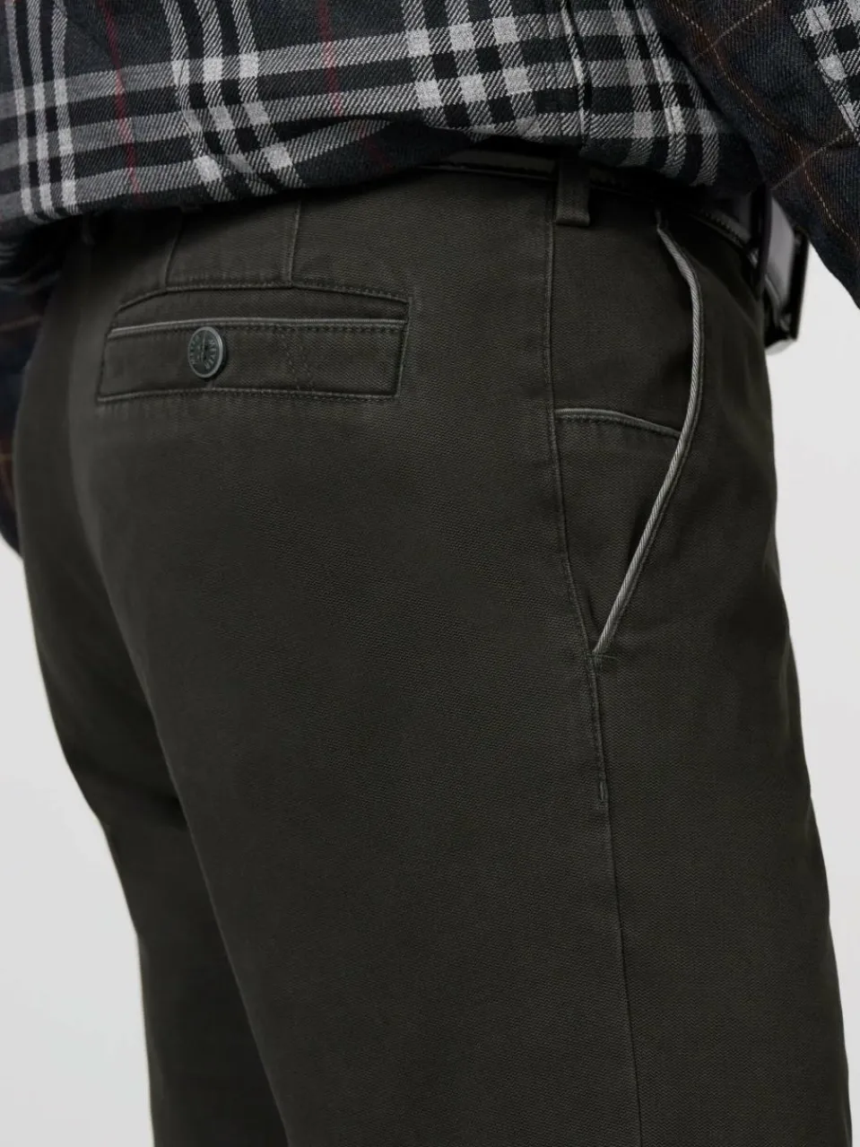 - Paspelierte Seitentaschen, 2 Gesäßtaschen