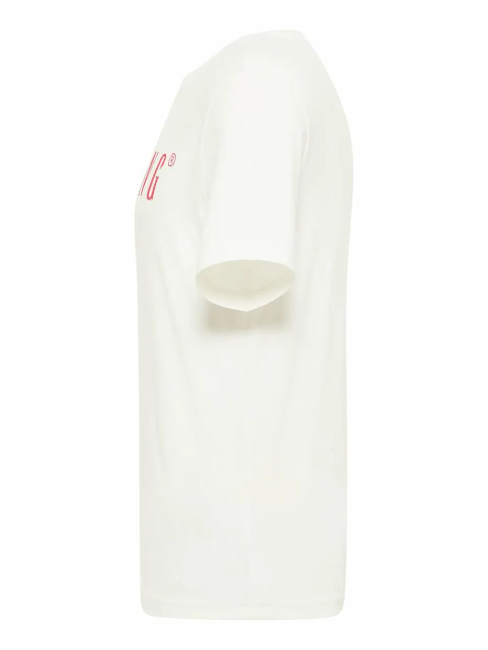 Ein plakativer Label-Schriftzug verleiht diesem T-Shirt von Mustang einen urban-lässigen Akzent. Auch der Komfort kann dank softer Baumwolle und eines Rundhalsausschnitts überzeugen. Das Shirt passt hervorragend zu einer Slim-Fit-Jeans und Sneakern. FÜR DICH: Das Produkt haben wir dauerhaft ins Programm aufgenommen!
