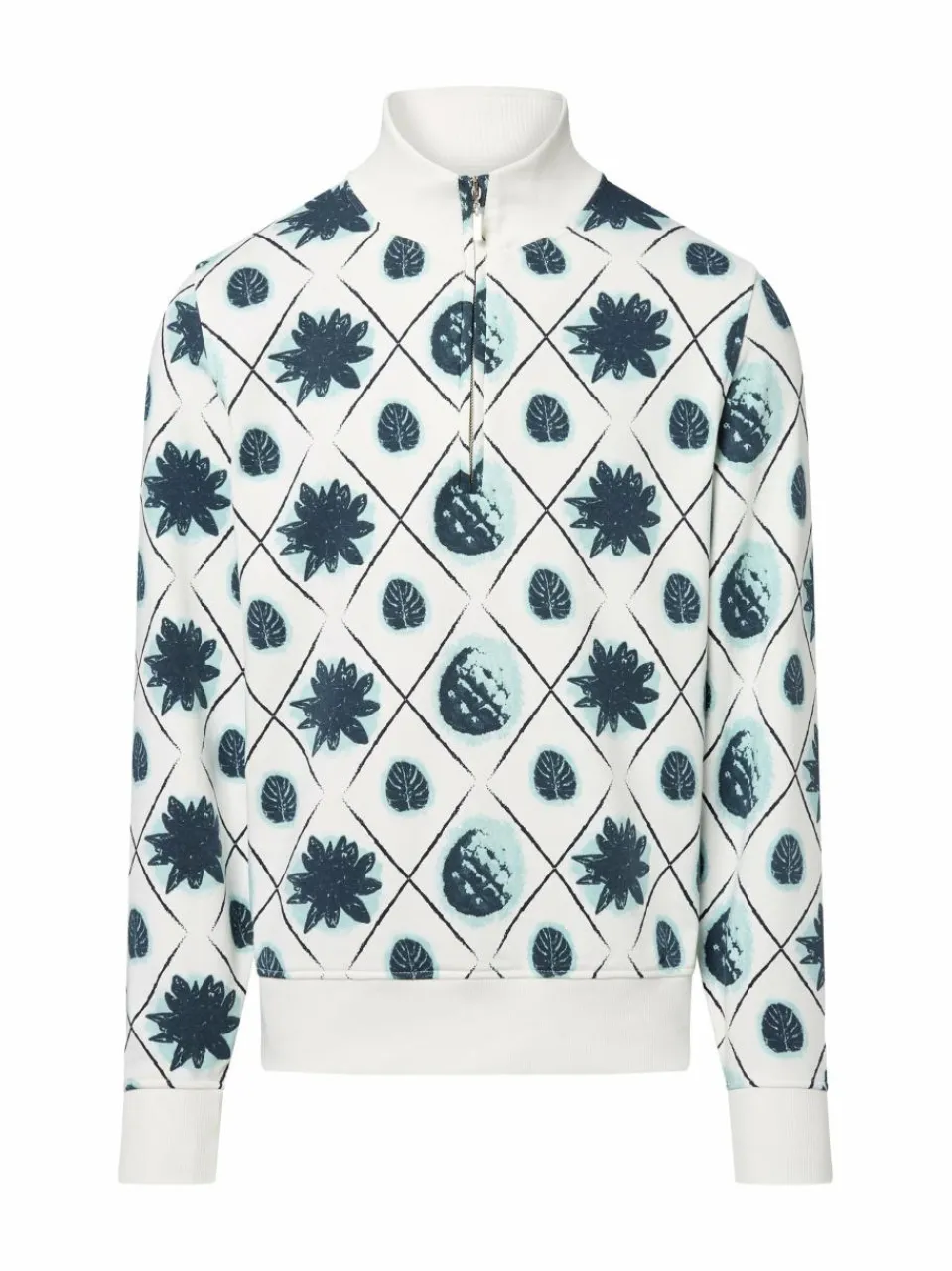 Das Sweatshirt von Nils Sundström zeigt sich im Troyer-Design mit typischem Kragen samt Zipper und zeichnet sich durch die weiche Qualität und den coolen Allover-Print aus.
