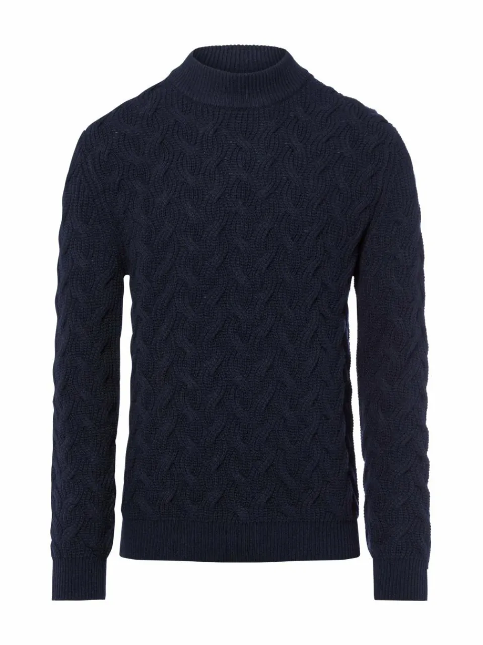Modernes Zopfmuster zeichnet den Strickpullover von OLYMP SIGNATURE als wärmendes Essential für die kalte Saison aus – aus reiner Wolle.