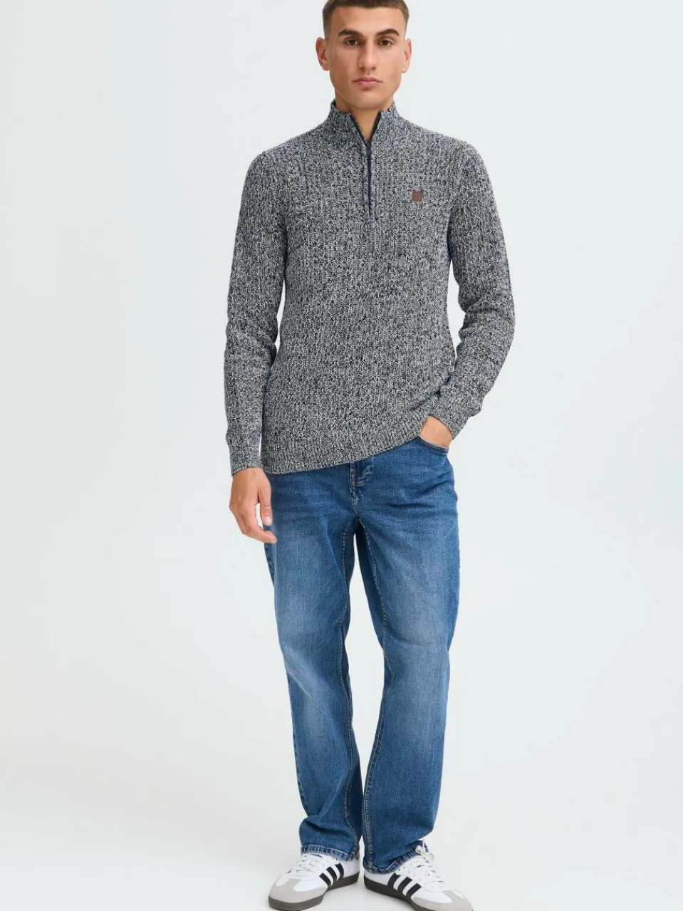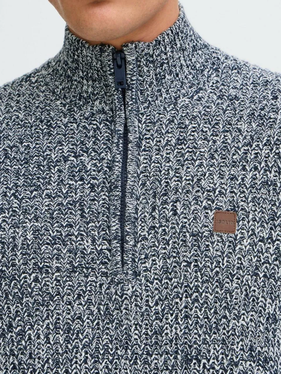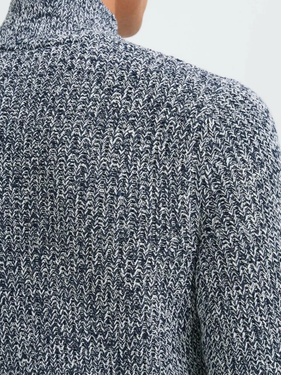 Dieser Herren-Troyer aus Grobstrick besticht mit markanter Maschenstruktur und wärmender Qualität. Der Quarter-Zip mit hohem Stehkragen schützt vor kühler Brise und verleiht maritimen Charme. Ob mit Chino für einen Hafenspaziergang oder mit Jeans für den Stadtbummel ein Strickklassiker mit Charakter.