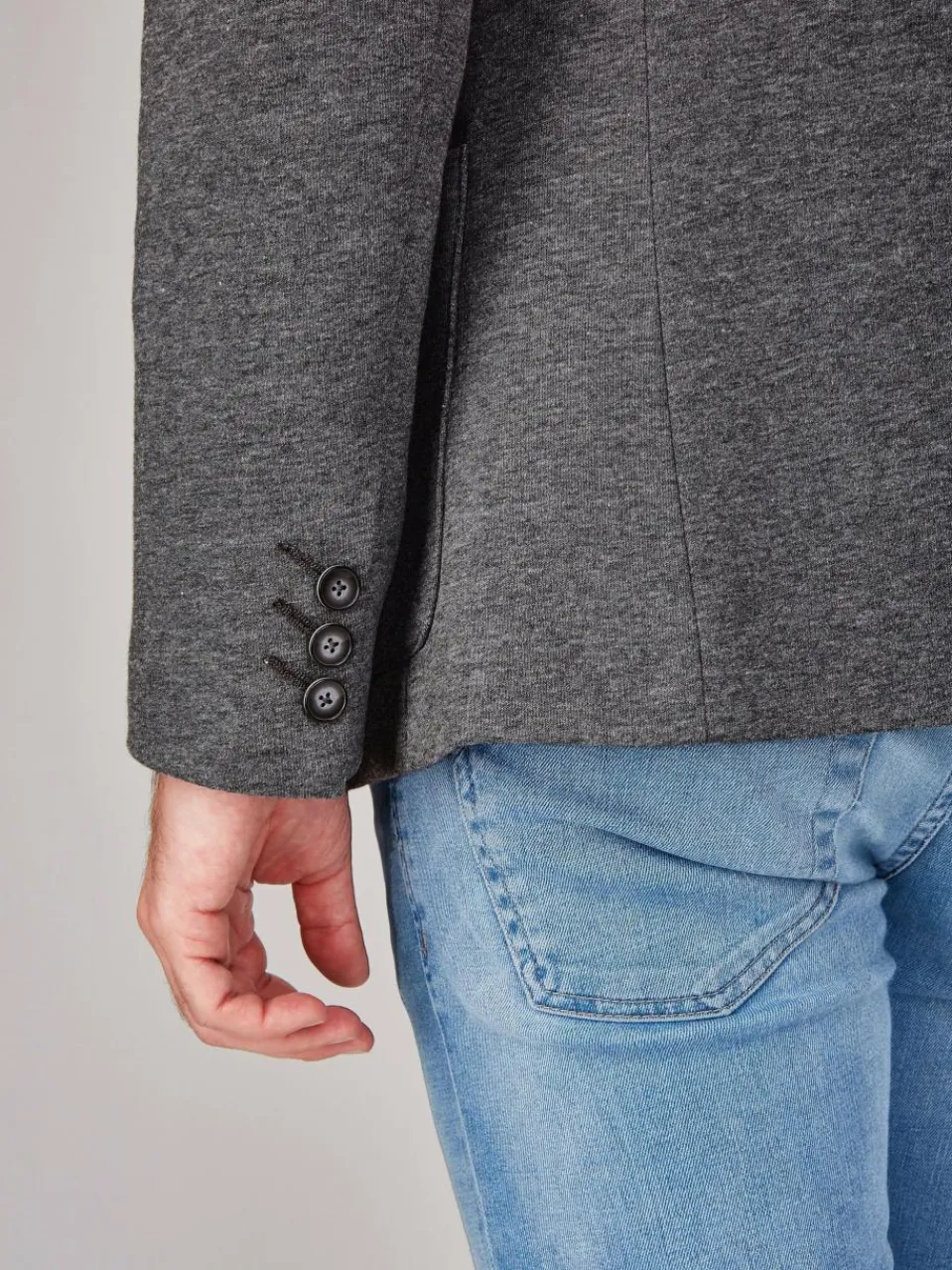Das Sweat Sakko von Steffen Klein ist durch die weiche Verarbeitung und den angenehmen Stoff äußerst komfortabel, sorgt aber trotzdem für einen gepflegten Look. Der weiche Jersey ist erste Wahl für den Winter, in der Übergangszeit macht das Jackett aber auch als ‚Outdoor-Sakko‘ eine gute Figur. Die neutrale Farbe lässt sich prima kombinieren und macht das Sakko zu einem täglichen Begleiter.