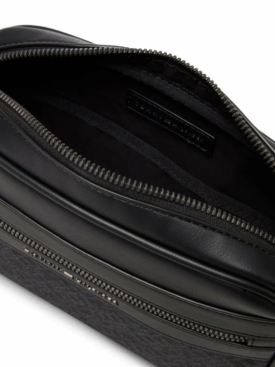 Kompakter Begleiter mit Stil für jeden Tag: die Tommy Hilfiger Reporter Bag aus Kunstleder im partiellen Monogram-Design und mit längenverstellbarem Crossbody-Strap.