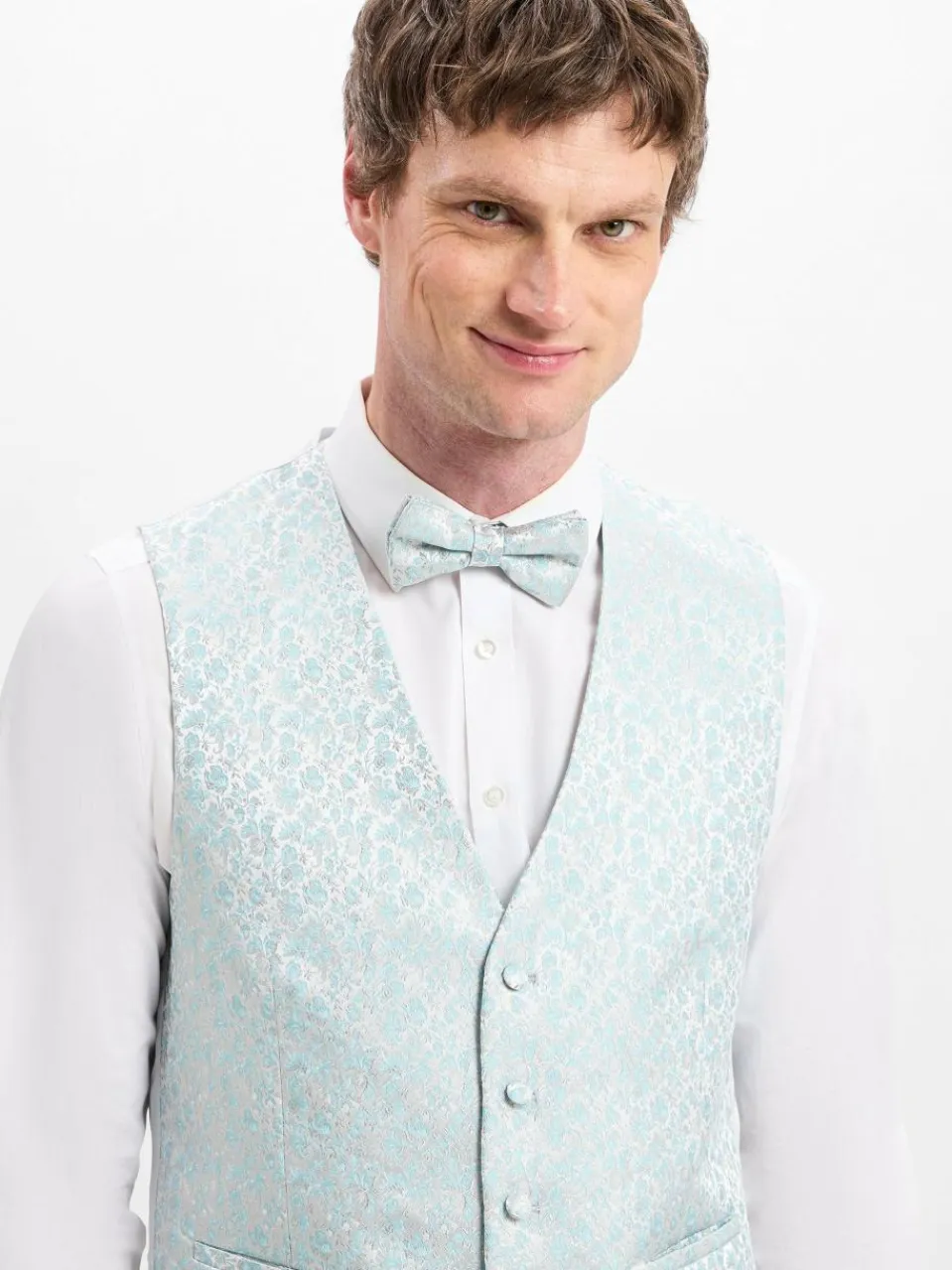 Im Brokat-Design setzt die WILVORST Weste glanzvolle Akzente – eine edle Ergänzung für festliche Looks. Die Weste ist Teil eines Baukasten-Anzugs, kann aber auch allein getragen werden.