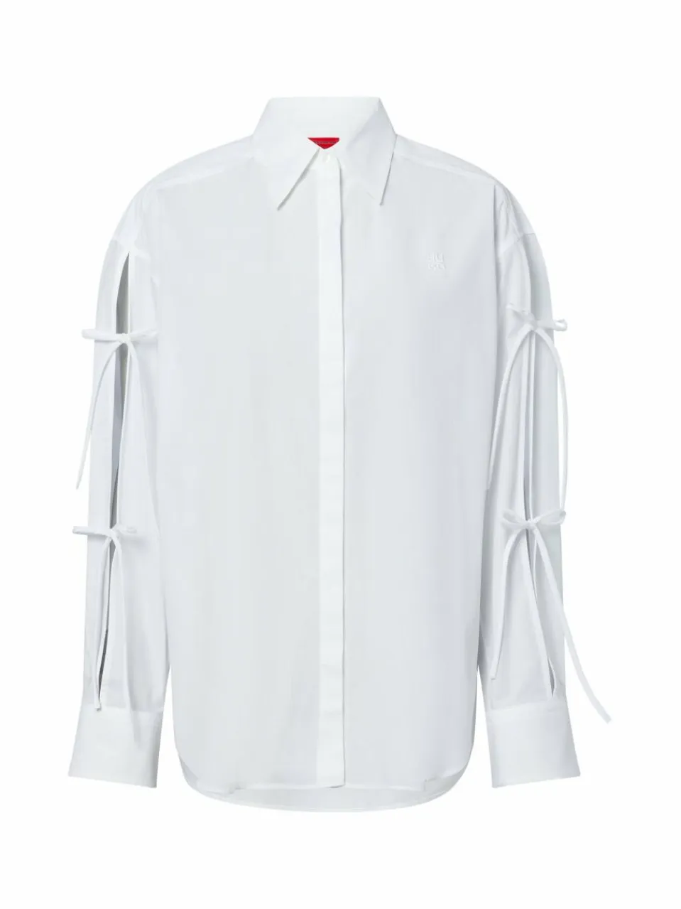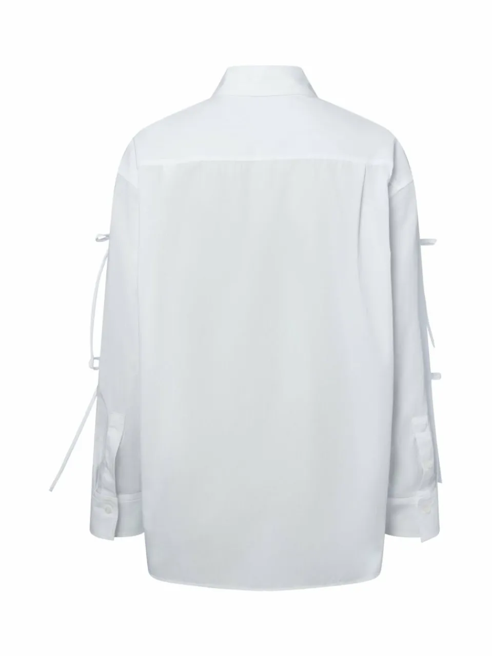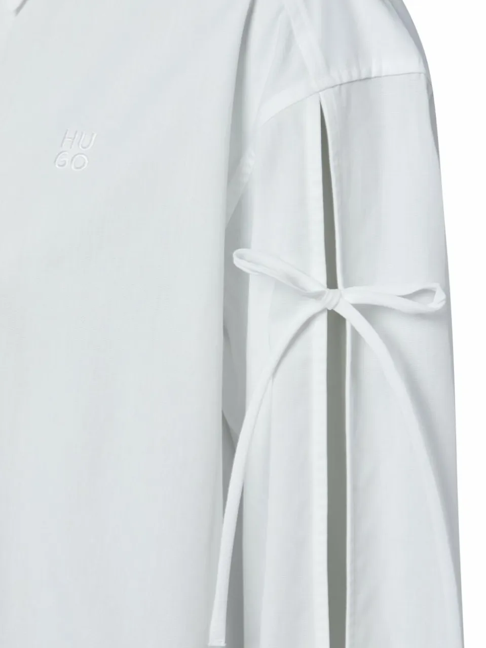 Mit verdeckter Knopfleiste und Ärmeln mit Cut-Out-Details und Schnürungen zeigt sich die Hemdbluse Evangelina von HUGO als stilvoller Blickfang.