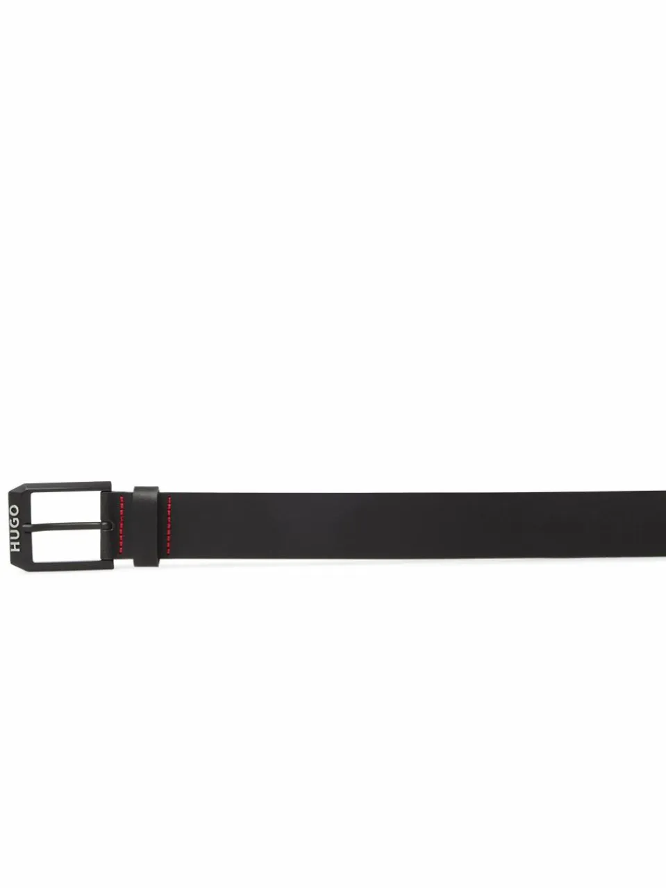 Die Nähte in HUGO Signature-Farbe und die Dornschließe mit Logo-Relief akzentuieren das cleane Design des Ledergürtels Gelio.
