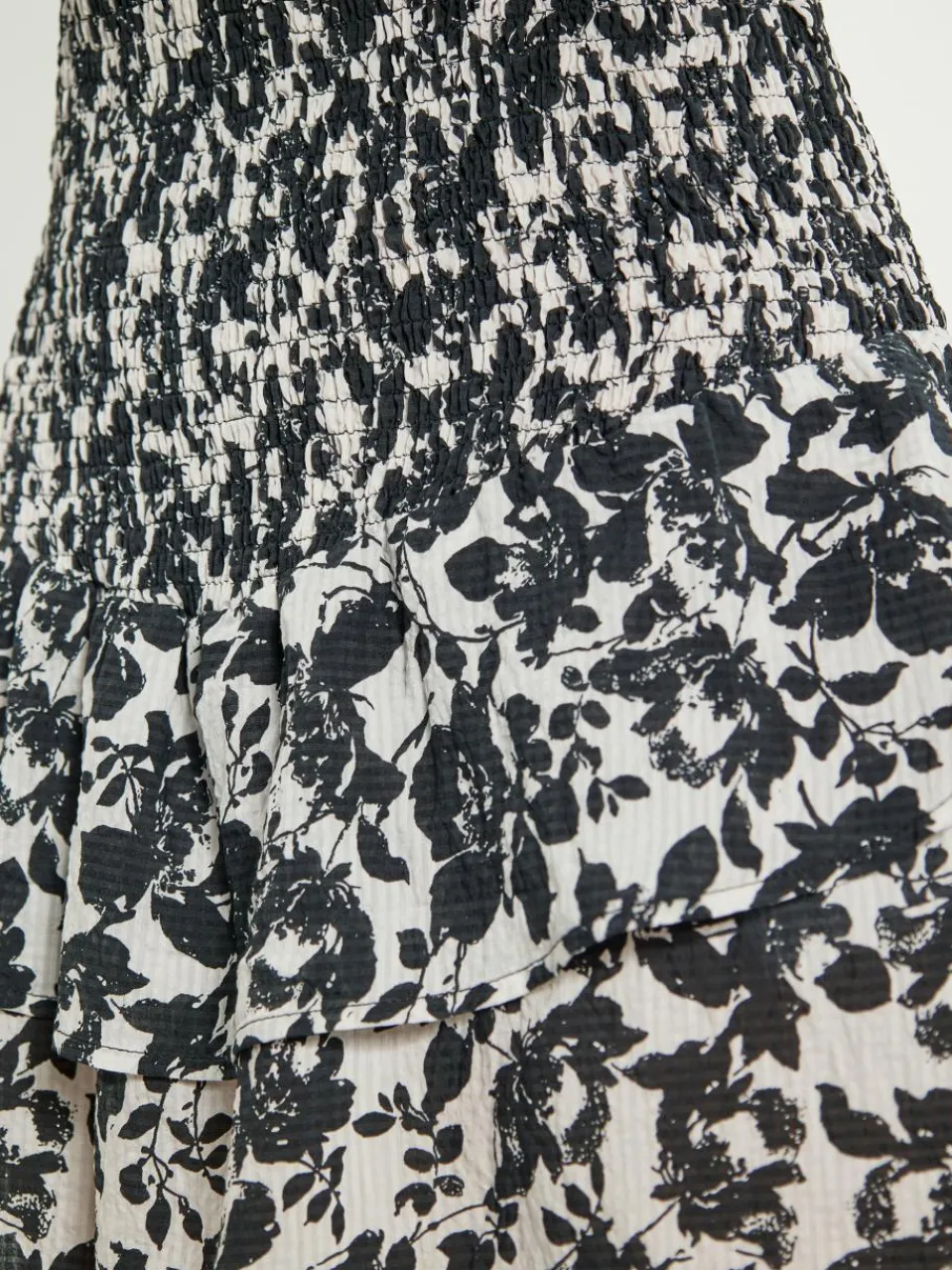 This mini skirt with a charming flower print is perfect for parties and summer days. Its tiered design creates a flouncy, voluminous look with ruffled edges for added flair. The elasticated waistband ensures a comfortable fit, while the lightweight fabric enhances movement and flow. The consistent floral pattern across each tier adds a touch of femininity to this stylish piece.