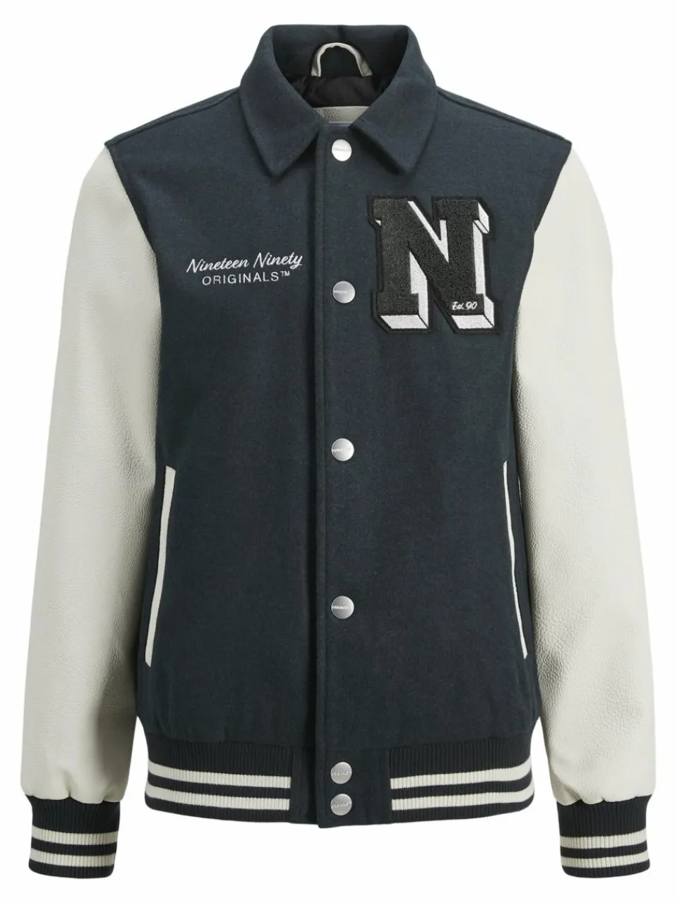 Die Bomberjacke von Jack and Jones Junior ist die perfekte Wahl für coole Jungs. Sie hat einen lässigen Fly-Away Kragen und einen beidseitigen Aufdruck auf der Vorderseite. Die durchgehende Knopfleiste und die Langarm-Ärmel sorgen für einen klassischen Look. Die seitlichen Eingriffstaschen bieten Platz für kleine Schätze. Die Jacke ist aus hochwertigem Material gefertigt und bietet einen hohen Tragekomfort. Mit dieser Jacke bist du bereit für jedes Abenteuer!