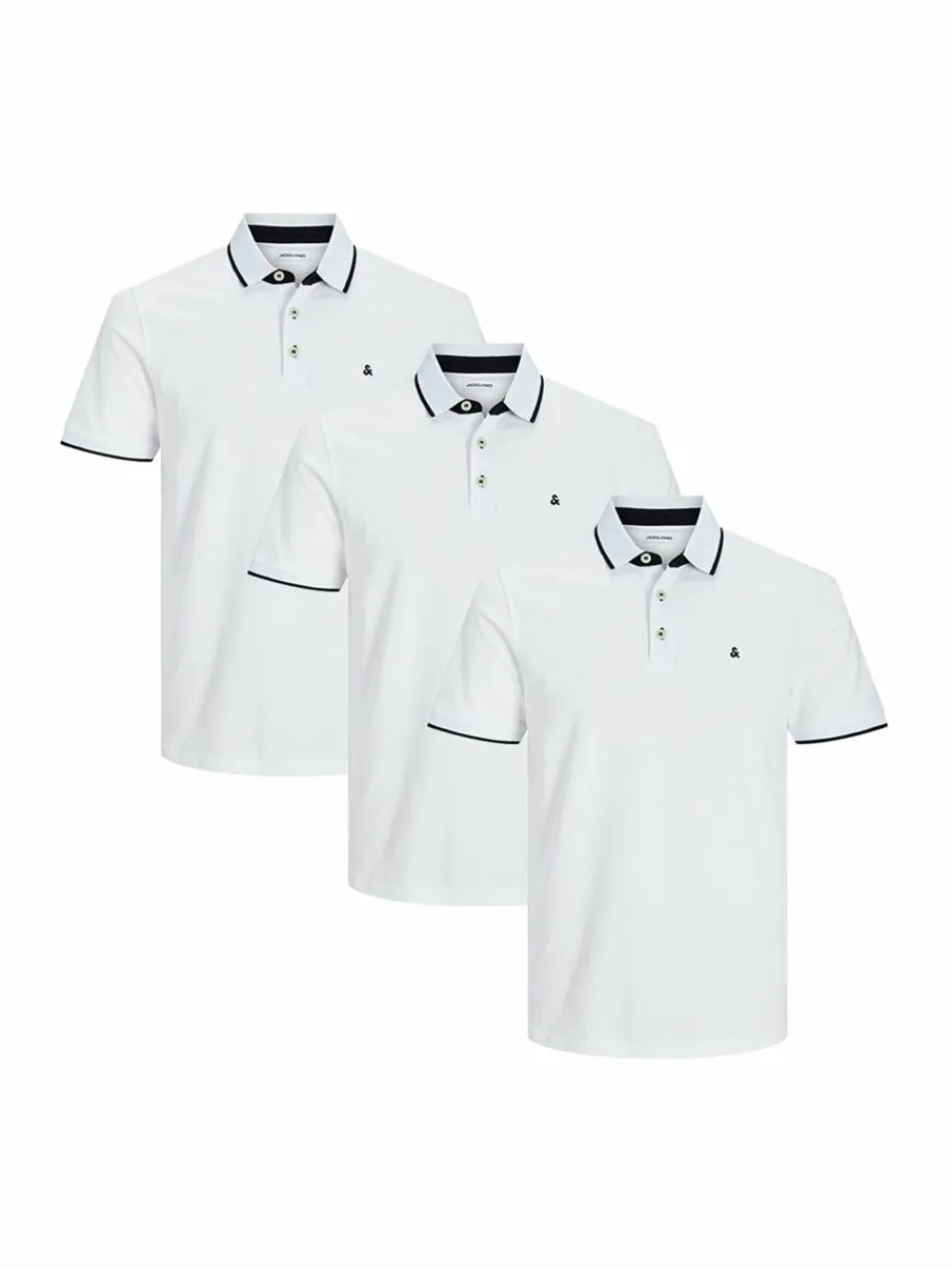 Jack & Jones Poloshirts<Herren Poloshirt – 3er Pack Paulos – Slim Fit beige weiß uni
