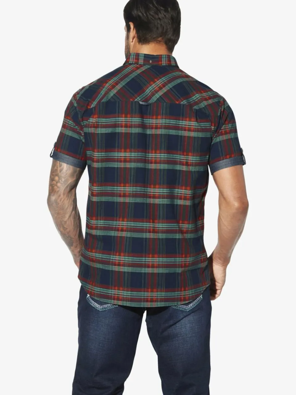 Jan Vanderstorm Hemden<Herren Kurzarmhemd – SNALLE blau kariert