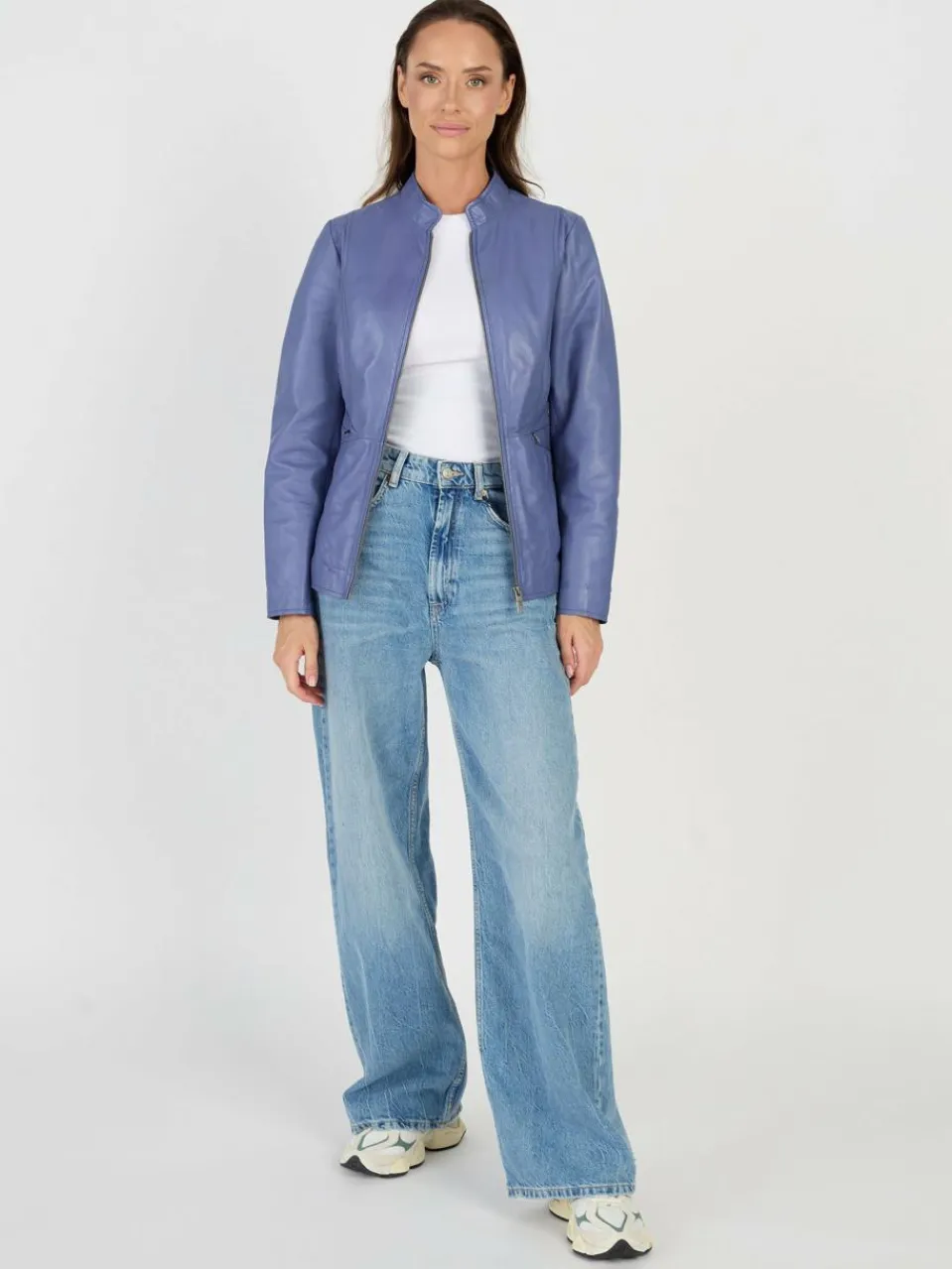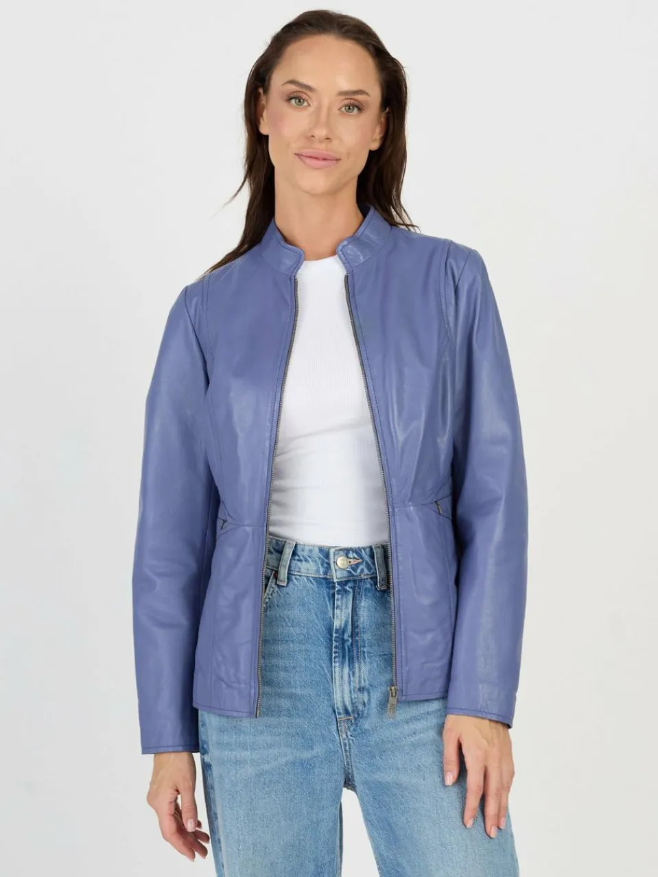 Diese Lederjacke setzt modische Akzente und bringt Farbe in jede Garderobe. Der taillierte Schnitt sorgt für eine feminine Silhouette, während das weiche Lammleder angenehmen Tragekomfort bietet. Ein schlichter Stehkragen und der durchgehende Reißverschluss unterstreichen das moderne Design sowie die Reißverschlusstaschen, welche den Look funktional ergänzen.