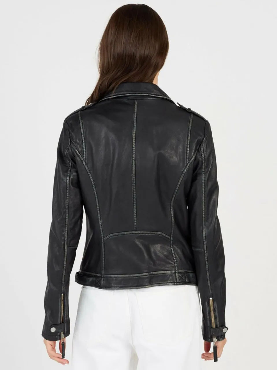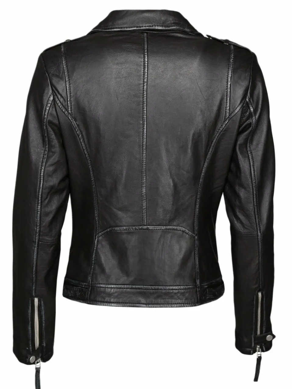 Bestehend aus weichem Leder, besticht diese Jacke durch ihren asymmetrischen Reißverschluss und den taillierten Schnitt. Die Seitentaschen sowie die Brusttasche sind mit Zipper verschließbar. Mit dieser stylischen Jacke im Bikerstil machen Sie in jeder Hinsicht eine gute Figur.