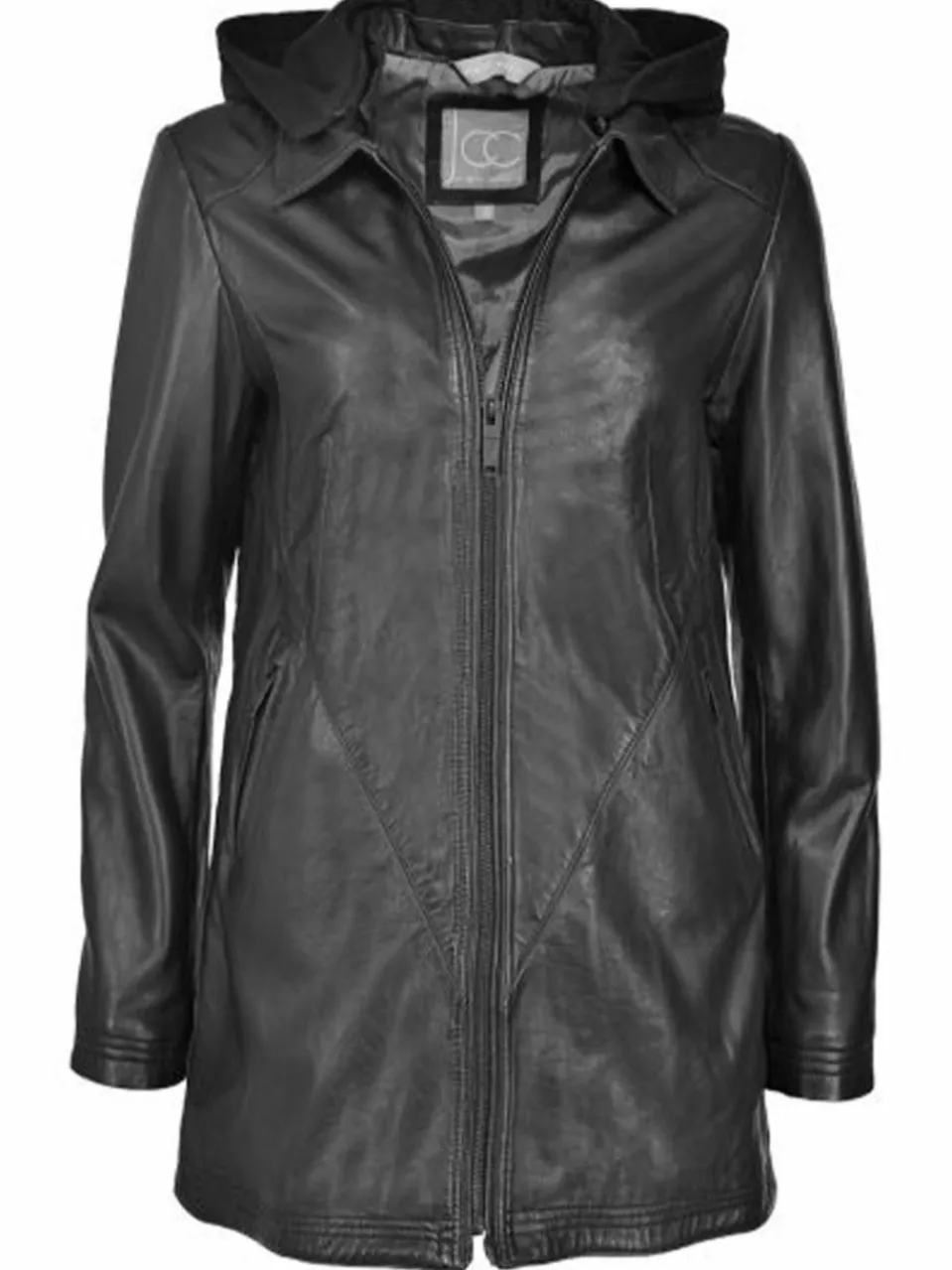Bei dieser Lederjacke der Marke JCC verbindet sich zeitloses Design mit hochwertiger Verarbeitung. Diese Jacke überzeugt durch ihr Echtleder sowie dem leicht taillierten Schnitt. Praktisch ist vor allem die abnehmbare Kapuze, mit der sich der Look durch einen Handgriff verändern lässt. Zwei seitliche Eingriffaschen und ein durchgehender Reißverschluss unterschtreichen die Funktionalität und den Komfort der Jacke.