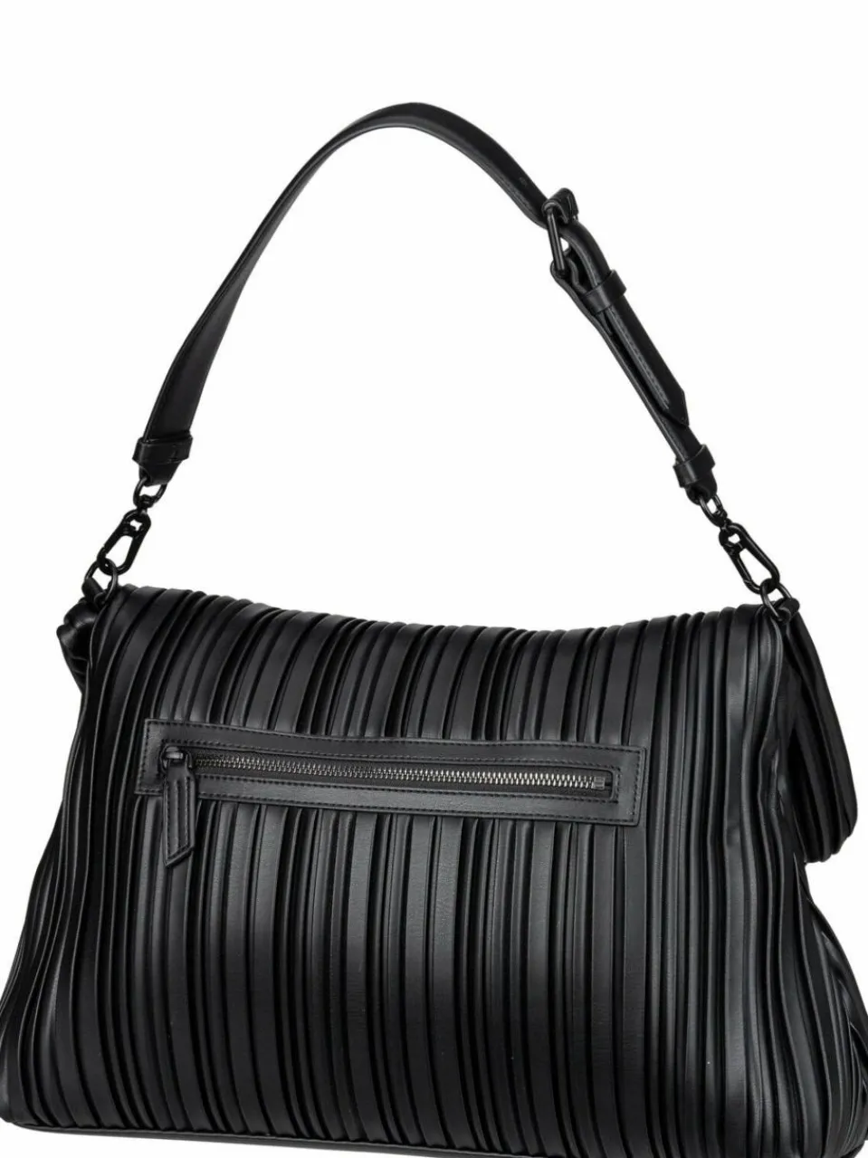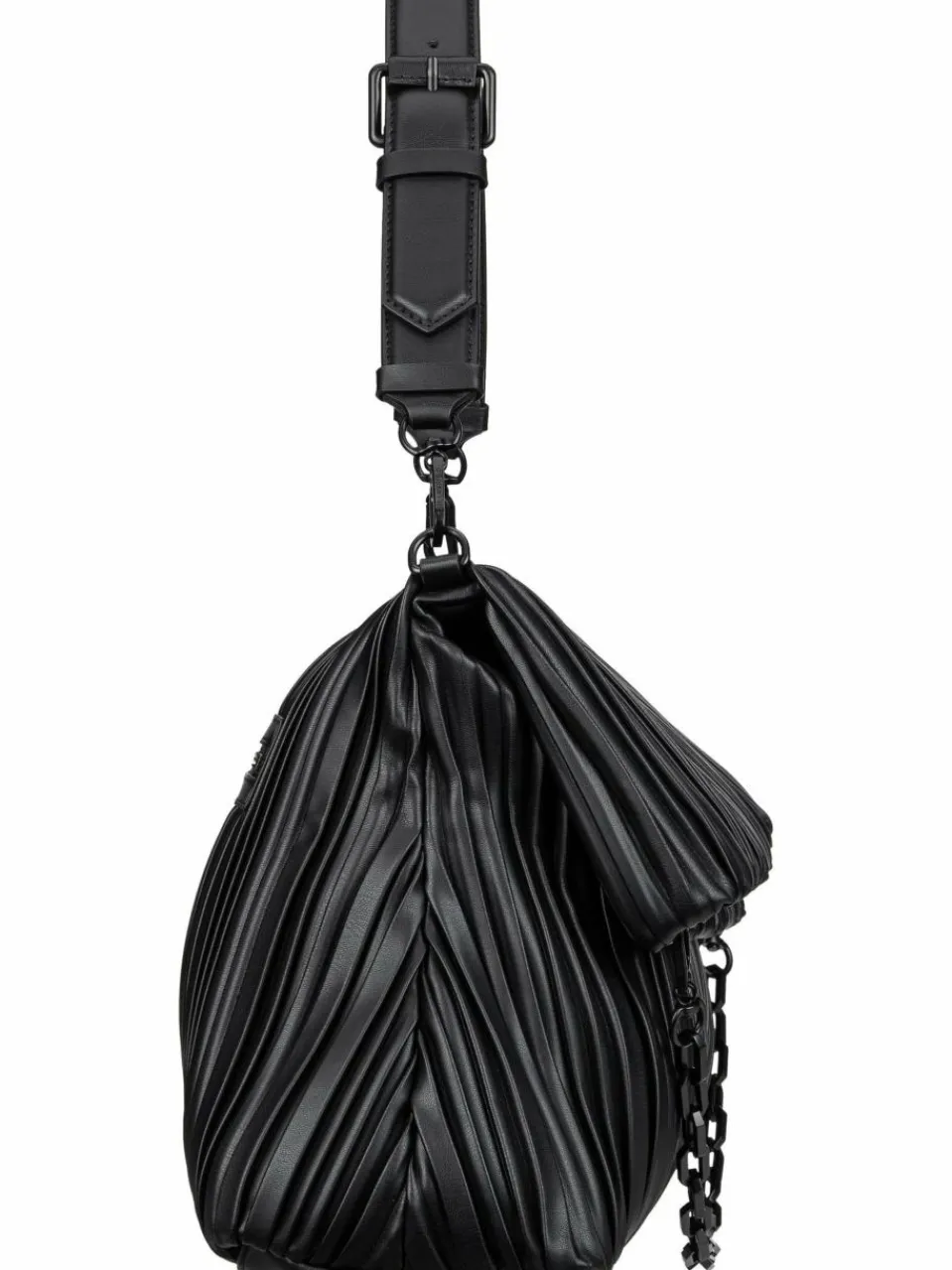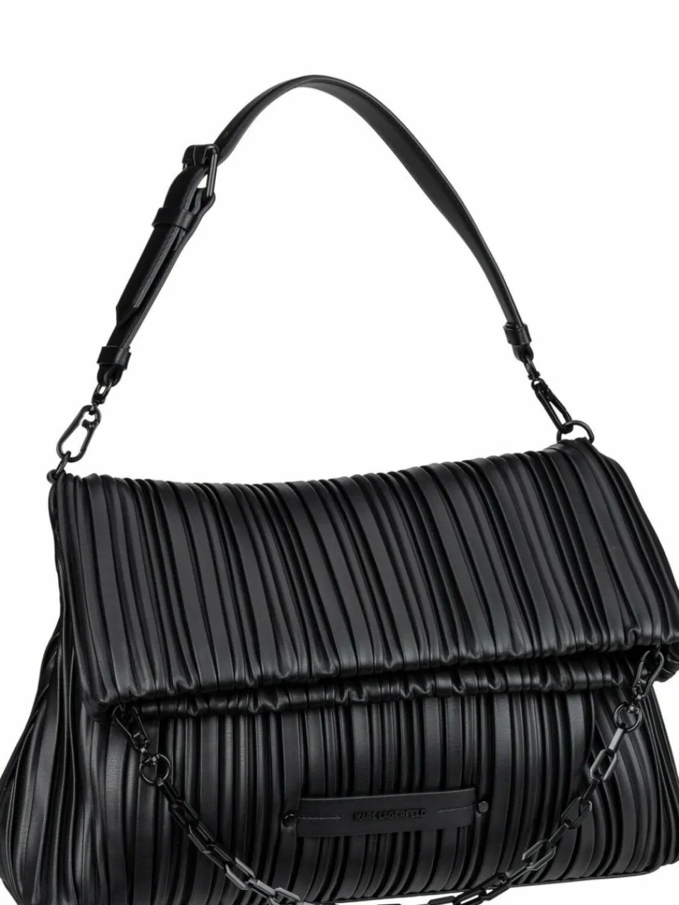 Diese Shoulder Bag von Karl Lagerfeld, aus plissiertem, teil-recyceltem Kunstleder, vereint Eleganz und ikonisches Design. Tagsüber ein moderner Eyecatcher, abends ein glamouröses Accessoire.