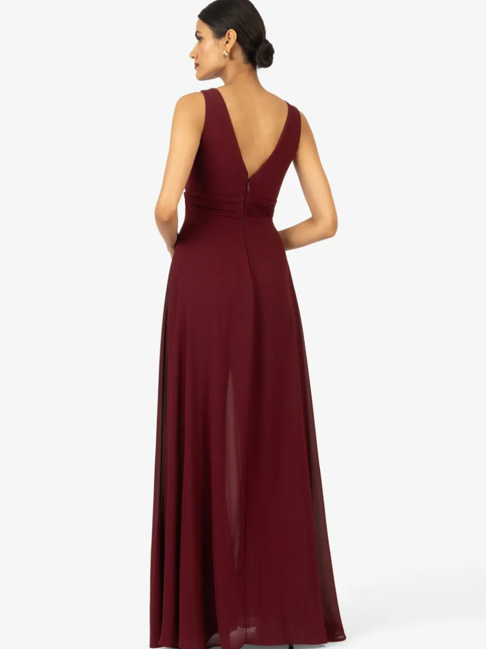 Dieser ärmellose Overall besticht durch seinen tiefen V-Ausschnitt und die geraffte Taille, die eine schmeichelhafte Silhouette schafft. Die weit geschnittenen Hosenbeine sorgen für einen eleganten und zugleich lässigen Look. Das fließende Material verleiht dem Overall eine leichte und luftige Anmutung, ideal für formelle Anlässe oder sommerliche Veranstaltungen.