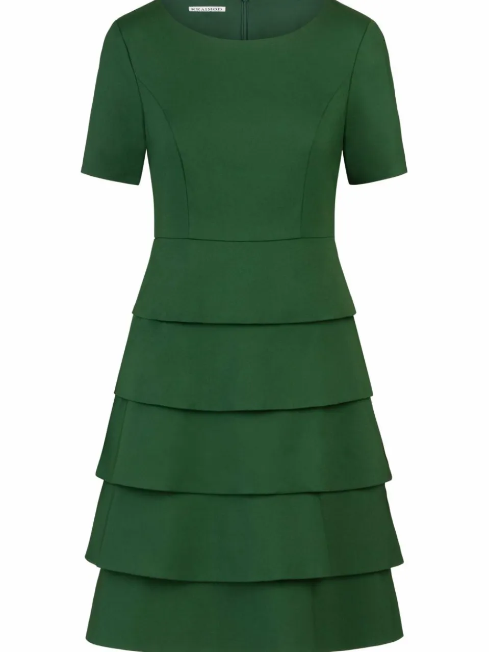Dieses feminine Kleid zeichnet sich durch sein mehrlagiges Design im Rockbereich aus, das für eine spielerische und stilvolle Silhouette sorgt. Die taillierte Passform und der Rundhalsausschnitt machen es ideal für Partys und elegante Anlässe.