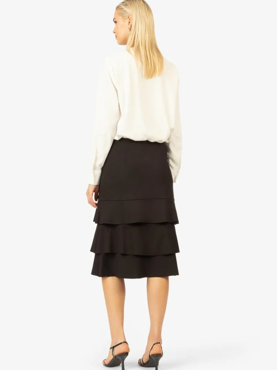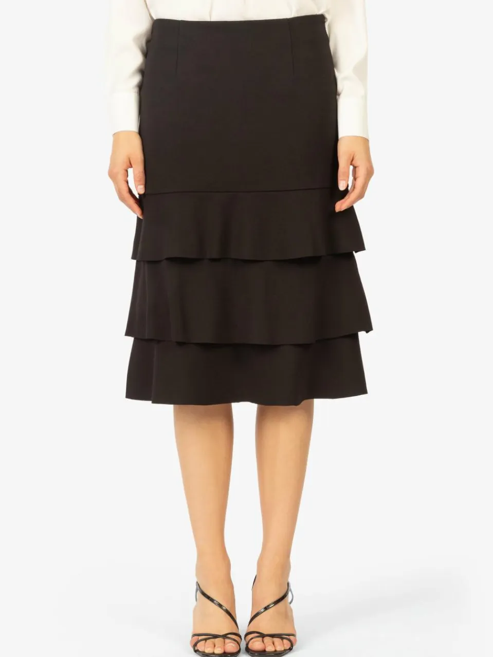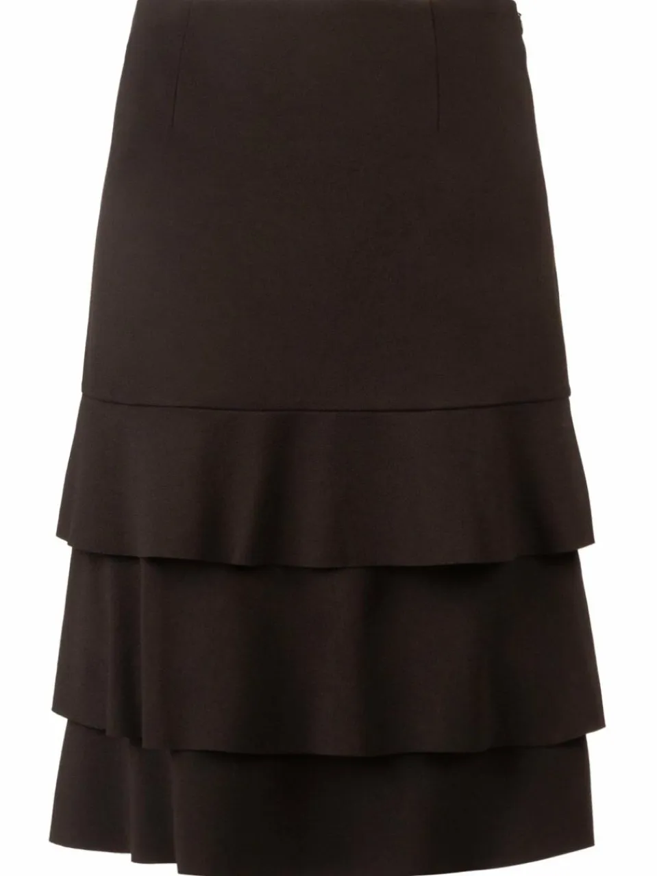 Der Stufenrock verleiht Ihrem Look eine frische, dynamische Note. Mit seinen sanften Volants und der schmeichelhaften Länge lässt er sich vielseitig kombinieren. Ein idealer Begleiter für Büro, Freizeit und besondere Anlässe.