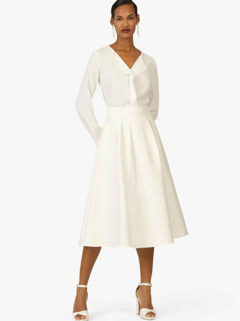 Der A-Linien-Rock bietet eine schmeichelhafte Silhouette, die die Taille betont und sanft in die Weite fällt. Perfekt für formelle und legere Anlässe, lässt er sich vielseitig stylen, um einen klassischen oder modernen Look zu kreieren.