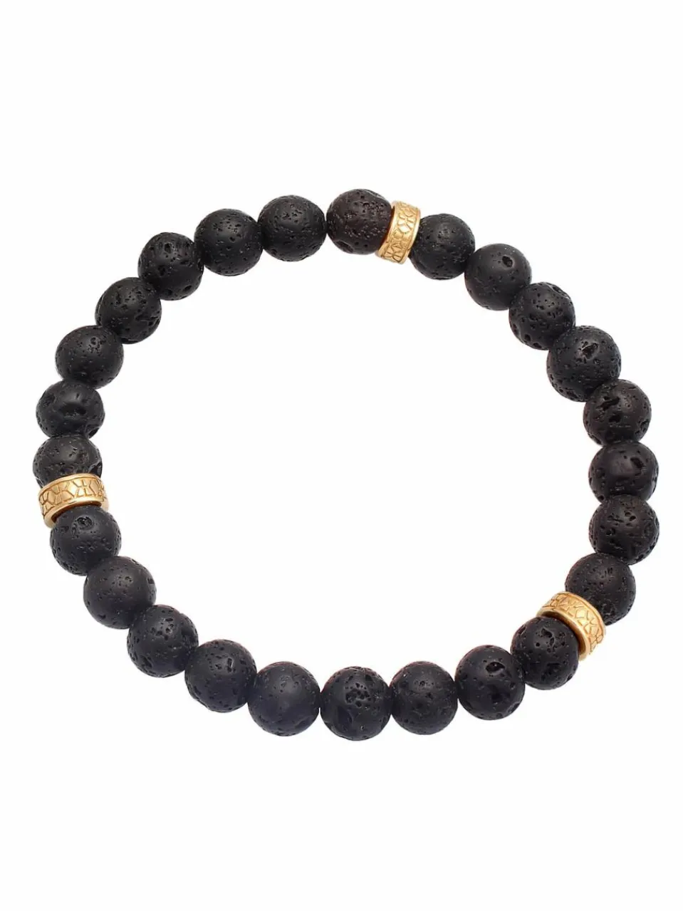 Dieses angesagte Naturstein Armband für Männer aus Lava Edelstein Kugeln ist ein It-Piece der Saison. Der rockige Look der Edelstein Kugeln wird durch oxidierte Silber Beads untermalt und präsentiert sich in einzigartiger Schönheit. Der stabile Gummizug im Armband verspricht einen angenehmen Tragekomfort. Ein maskulines Herren Accessoire im lässigen Look für Partys, Business und dem legeren Jeanslook.Da es sich um ein Naturprodukt handelt, ist jede Perle einzigartig.Für Frauen die ein markantes Armband suchen, eignet sich die Länge von 19 cm.