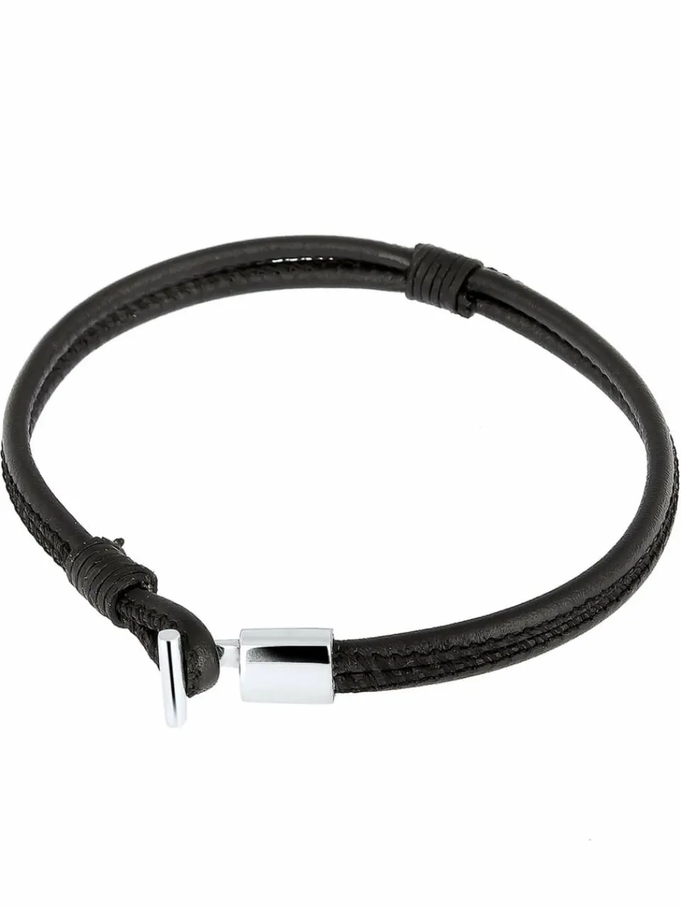 - Elegantes Armband für Herren aus echtem Leder mit T-Bone Verschluss