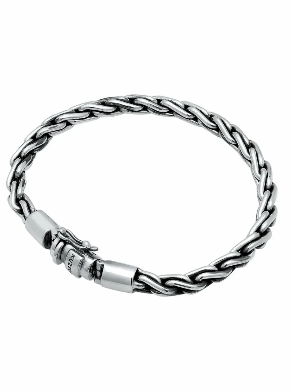 Dieses lässige Kuzzoi Herrenarmband im Kordeldesign wurde aus 925 Sterling Silber gefertigt. Der feminine Look besitzt durch seinen polierten und oxidierten Farbeffekt einen stylischen Vintage Look! Der schmale Kastenverschluss verleiht dem Armband eine lässige Note. Sie werden begeistert sein, wie gut dieses Kuzzoi Armband zum Anzug, Lederjacke oder einer verwaschenen Jeans passt. Für Frauen die einen maskulineren Look lieben ist dieses Schmuckstück in Länge 19 cm geeignet.Dieses exklusive Schmuckstück wird in einem eleganten Geschenk-Etui geliefertHinweis zu Silberschmuck: Achten Sie bitte darauf den Kontakt mit zu hoher Feuchtigkeit und großer Hitze zu vermeiden, da sich das Silber dabei verfärben kann. Sollte es trotzdem zu Verfärbungen kommen, können Sie das Schmuckstück mit einem Silbertuch problemlos wieder reinigen.
